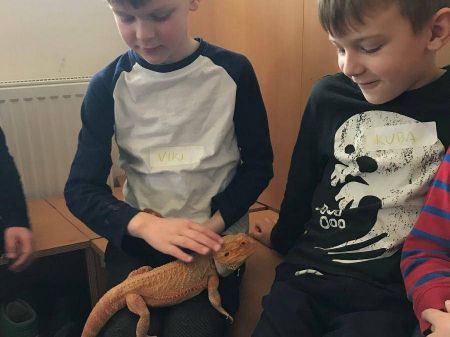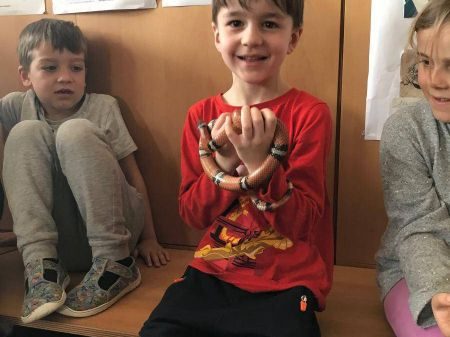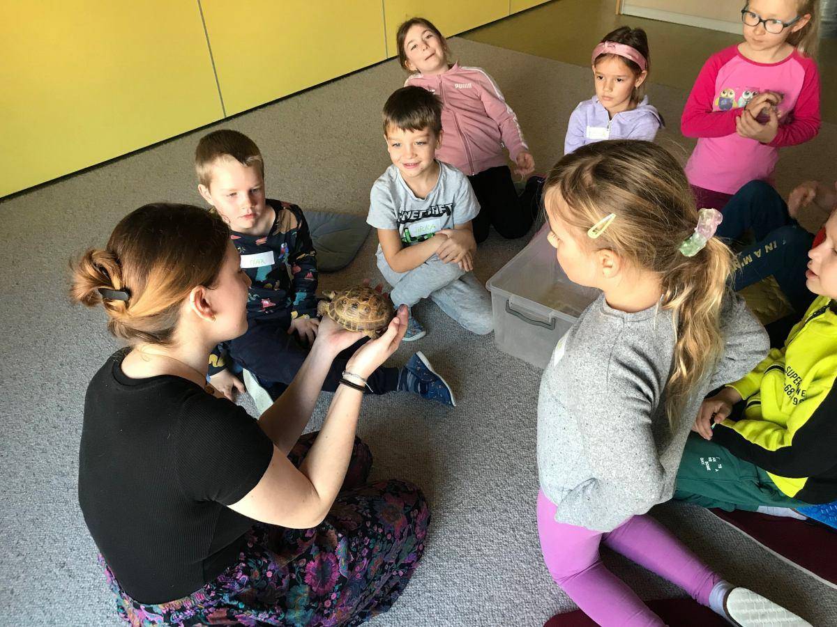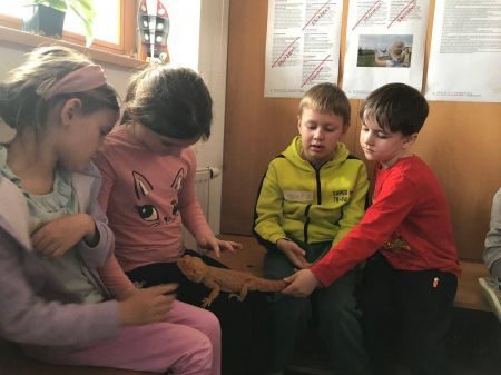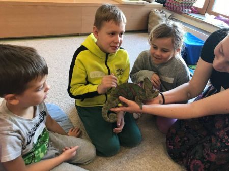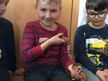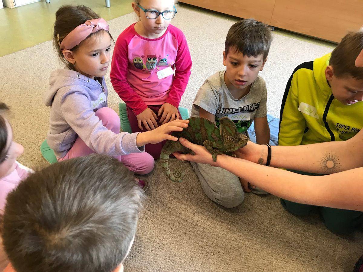 Ve čtvrtek 23. 3. se děti z 1. třídy zúčastnily programu na Rozmarýnku – Kam se plazí plazi. Dozvěděly se, jak se starat o různé druhy plazů a co potřebují k životu. Mohly si pohladit a vzít na klín chameleona, hada, želvu a vlastnoručně nakrmit agamu. Samy si vyrobily malou želvičku z vlny, kterou si odnesly domů. Na závěr programu měly možnost nakrmit i ostatní zvířátka na zahradě.