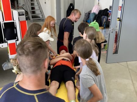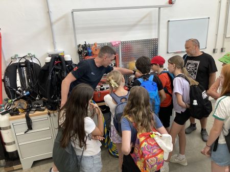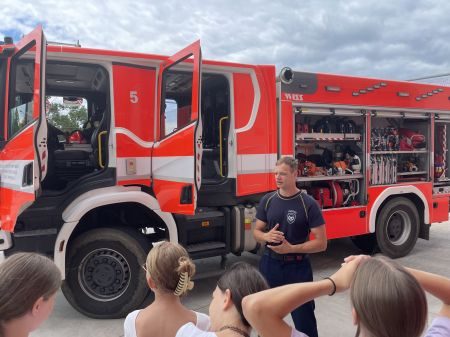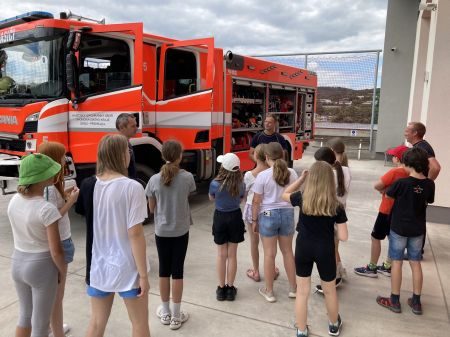 Na přehradě nás čekala jízda parníkem a koupání. Potom jsme navštívili hasiče a policejní potápěče. Exkurze nám umožnila nakouknout do zákulisí těchto profesí. Bylo to zábavné i poučné.