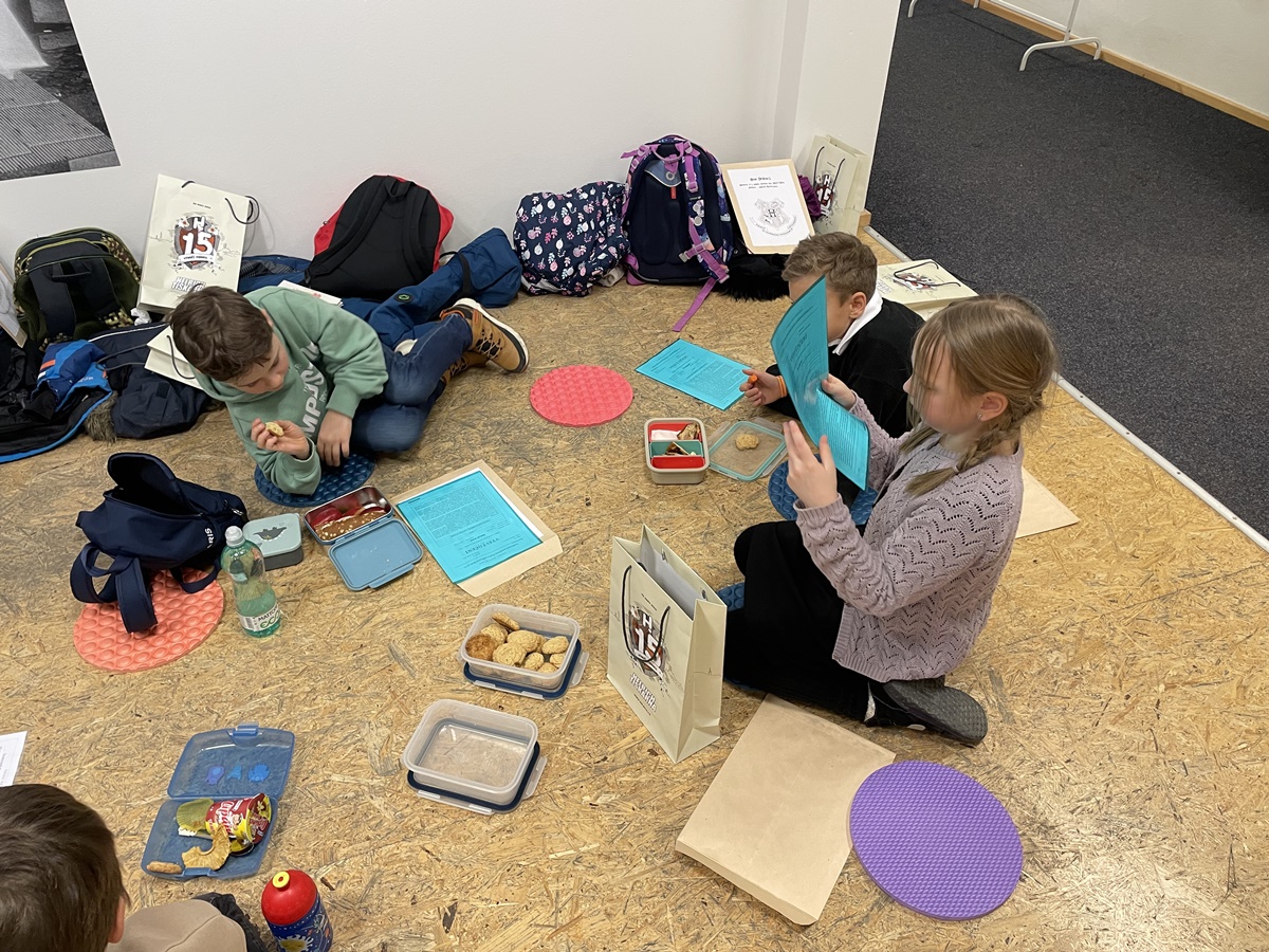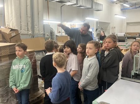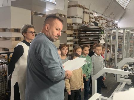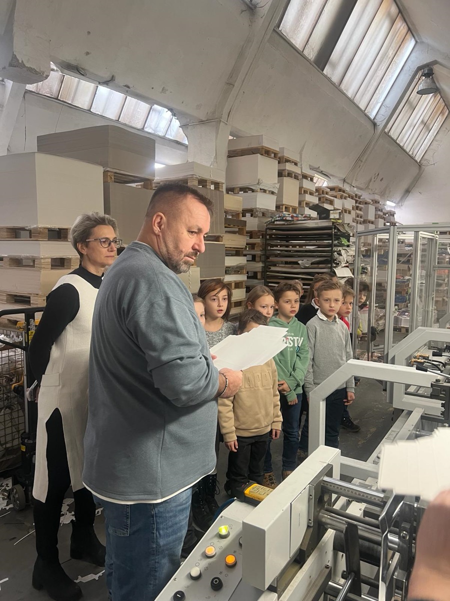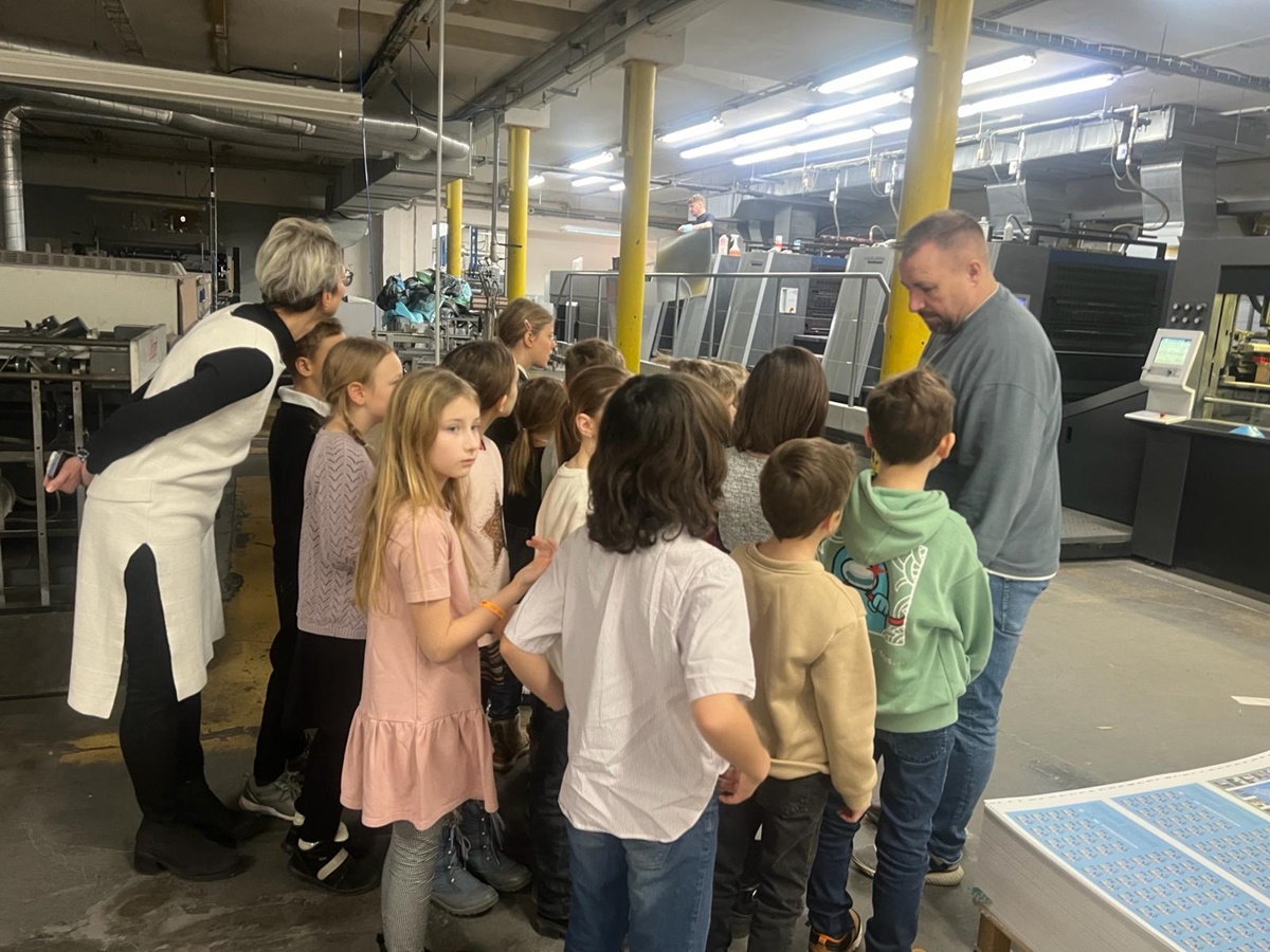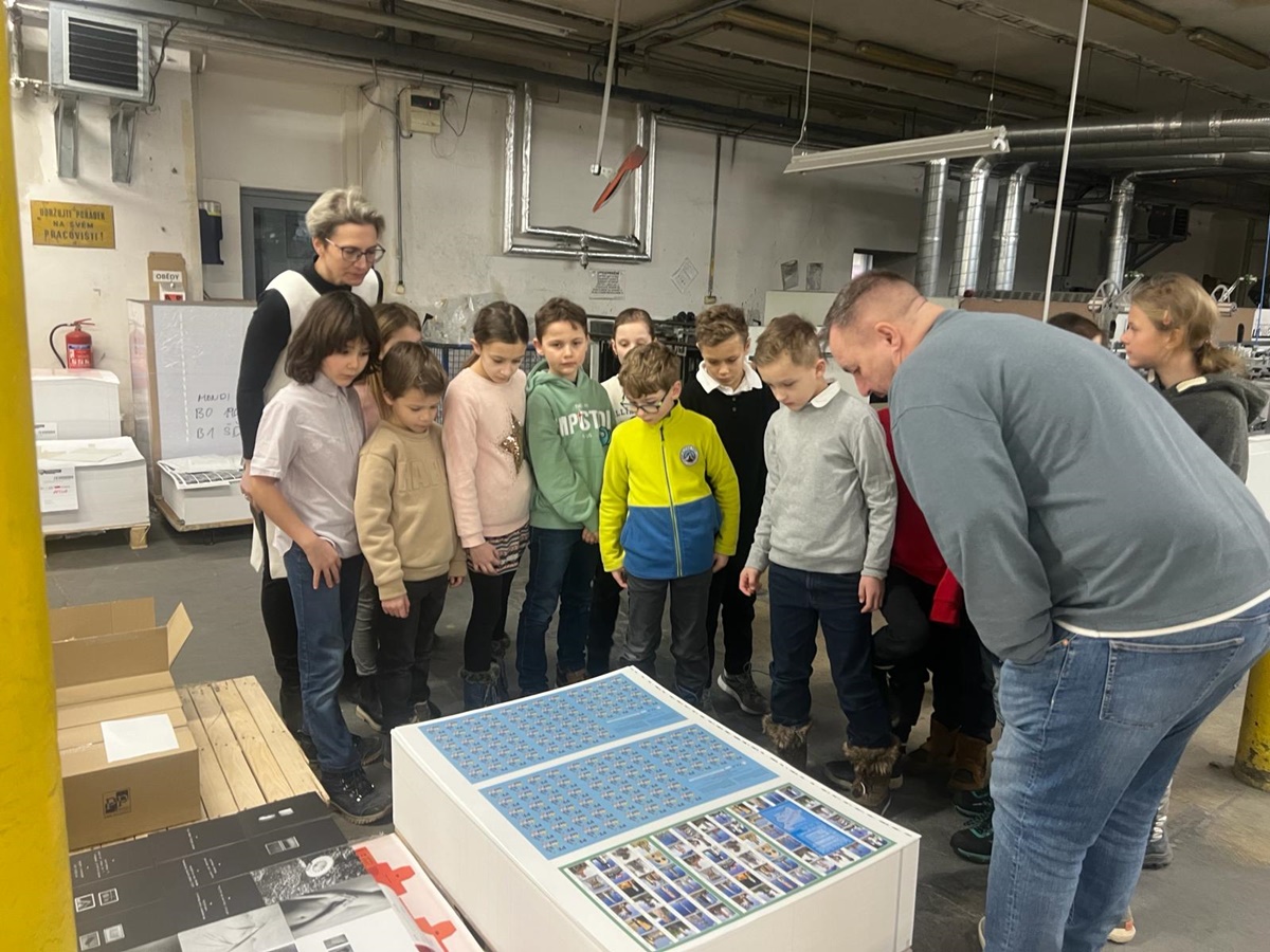 Děti navázaly na projektový den o knize a výrobě knih ze druhého ročníku. Pan ředitel trpělivě a poutavě děti zasvětil do chodu celého procesu od druhů papíru, fólií až po koncové výrobky. Děti tedy viděly, jak se tisknou knihy, pexesa, slovníky nebo krabičky. Po prohlídce děti dostaly dárečky v podobě pexes, deníčků a cestovních průvodců. V závěru děti obdržely vysvědčení, které si v klidu přečetly.