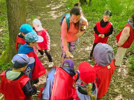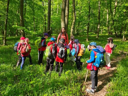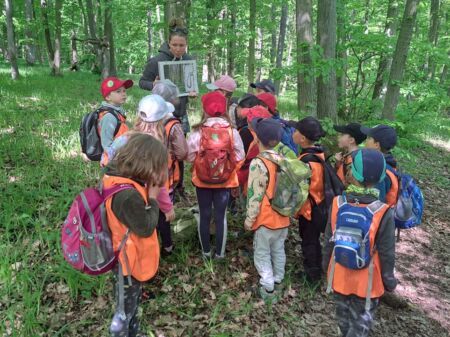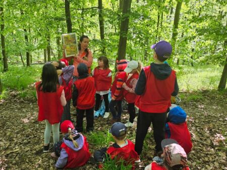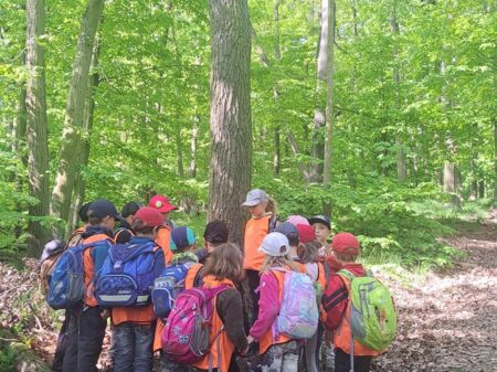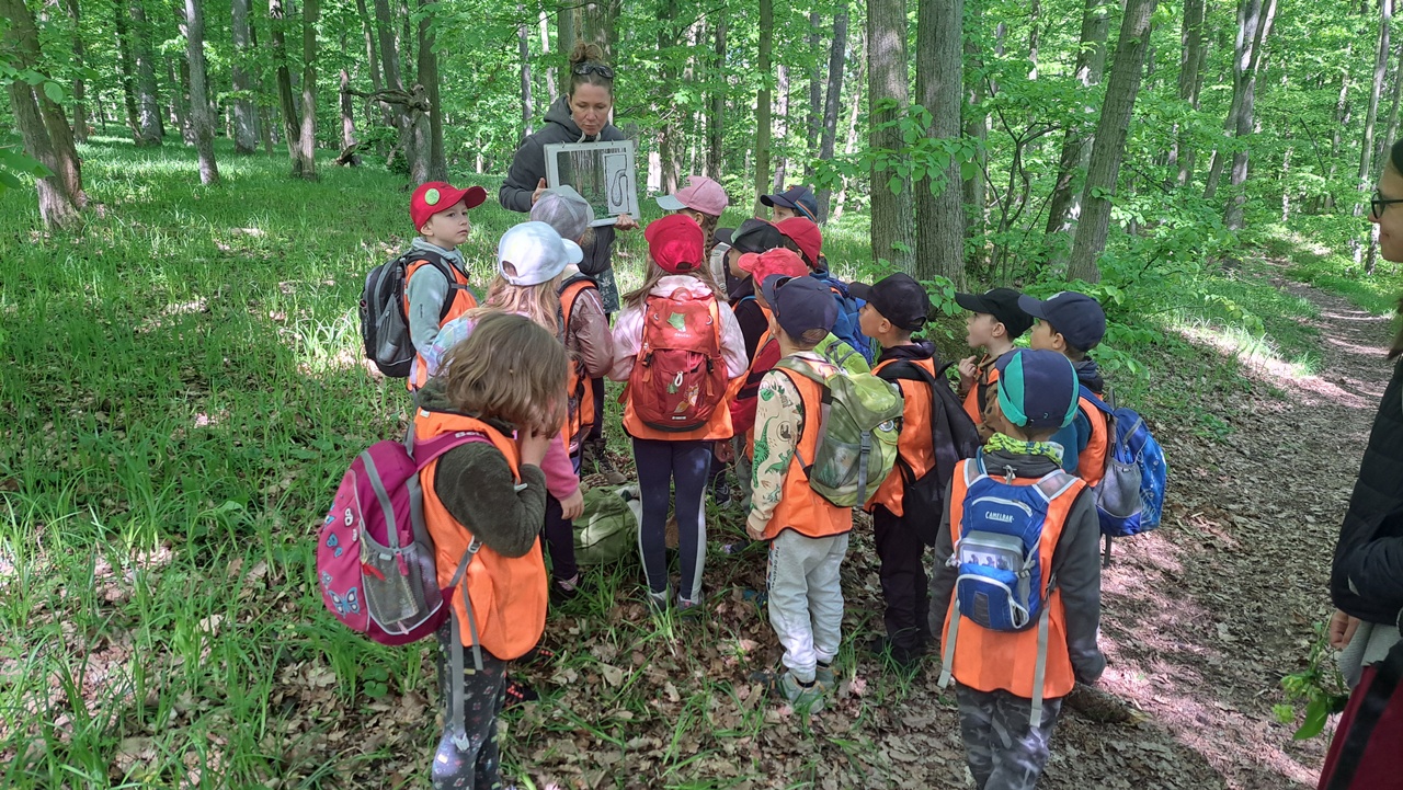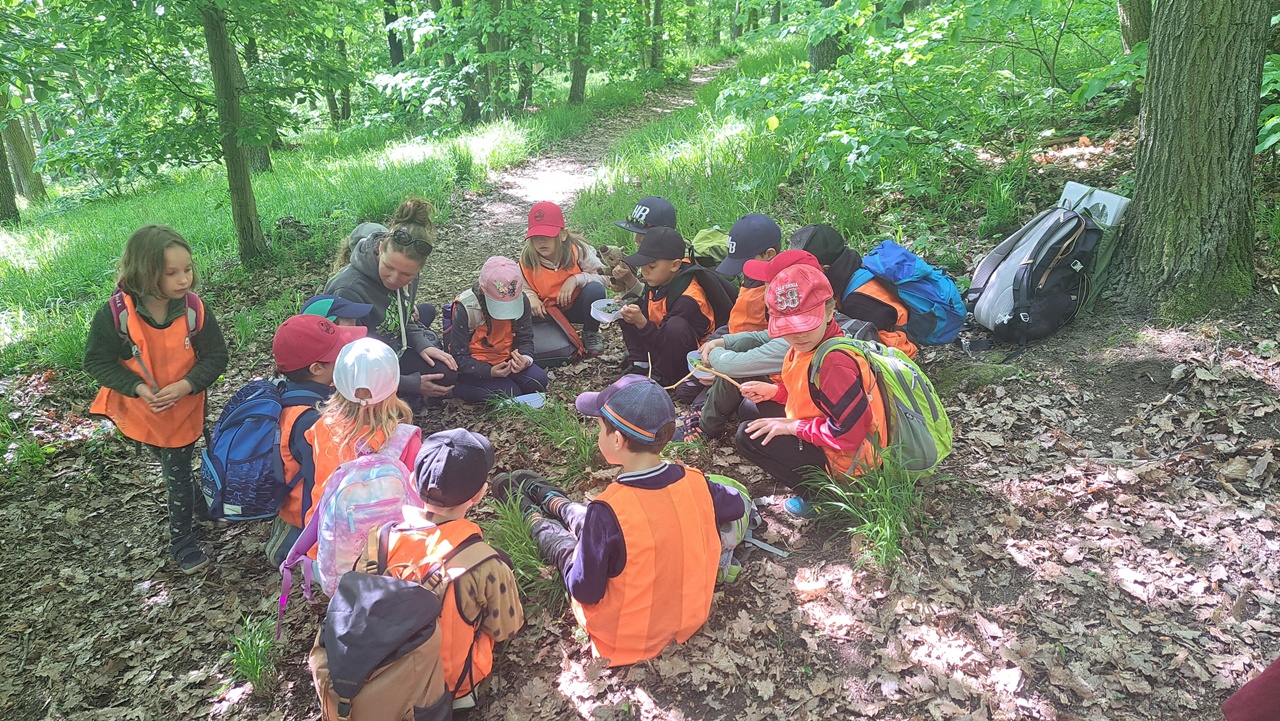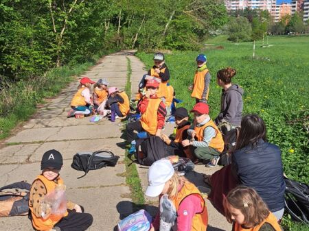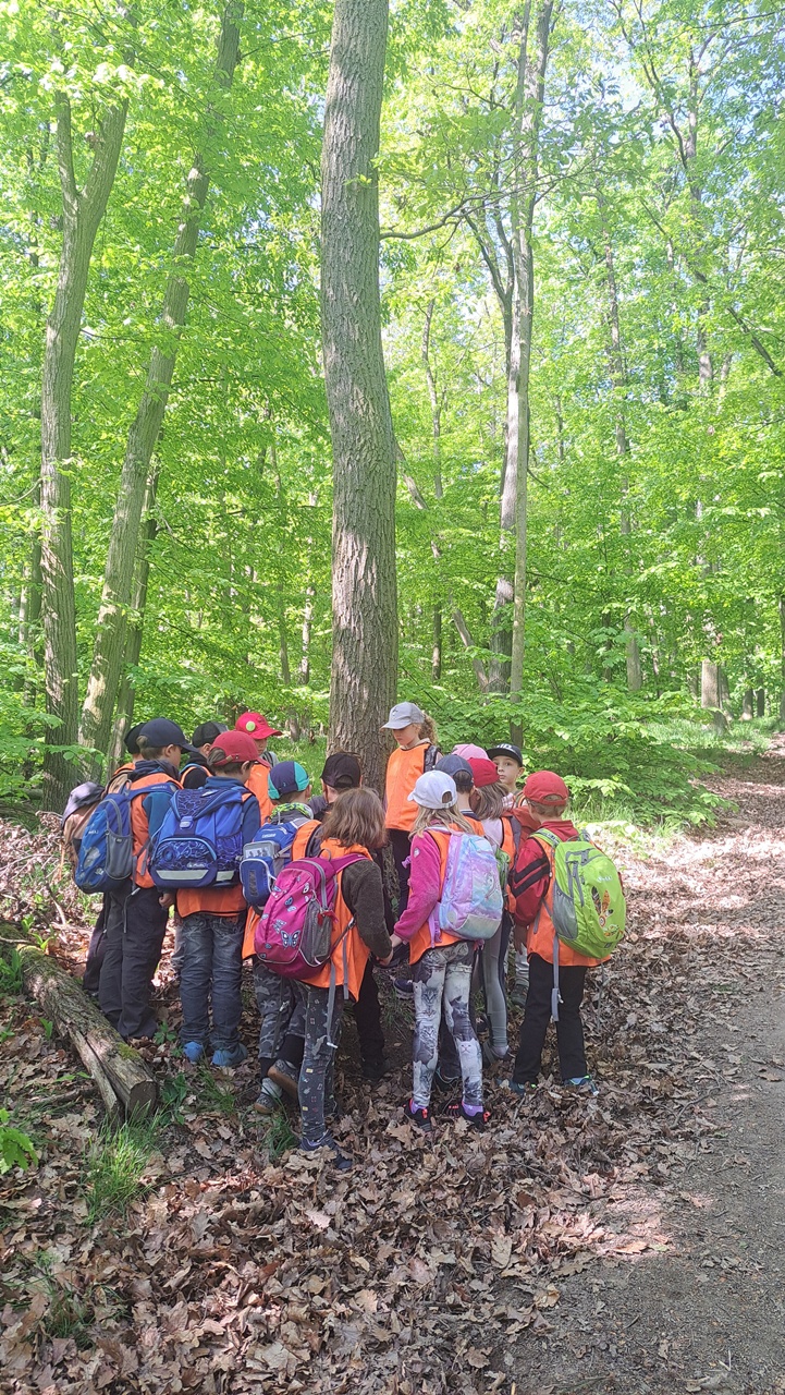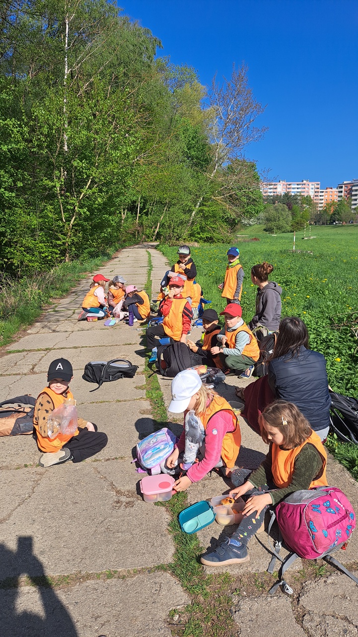 Do obory za zvířátky. Kvůli slintavce a kulhavce se ale do obory nesmělo, tak jsme byli s prvňáky a druháky zvědaví, kam se tedy půjdeme podívat a kde budeme bádat. Nakonec jsme vyrazili do Pekárny, což je chráněná přírodní památka – listnatý les mezi Bystrcí a Žebětínem. Bylo tam nádherně. Všude bylo zeleno, svítilo slunko, zpívali ptáci. Jen jedna věc byla smutná – malé divoké prasátko Markazínek se ztratilo své rodině. Naštěstí byla v lese spousta dětí, které chtěly prasátku pomoci. A tak zkoumaly přírodu – hledaly pobytové znaky zvířat, poznávaly stromy, pomáhaly strakapoudovi nakrmit mláďata, ve ztrouchnivělém dřevě chytaly a pozorovaly různé zajímavé živočichy. A mezi tím celou dobu sledovaly, jestli se někde neobjeví stopy rodiny divokých prasat. Nakonec všechno dobře dopadlo a malé prasátko svoji rodinu našlo. A my jsme si užili prima dopoledne v krásném lese.