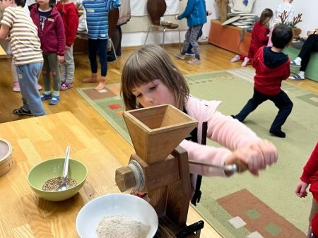 Program nabídl dětem jedinečnou příležitost vyzkoušet si tradiční postupy přípravy surovin a výroby těsta. Děti si například vlastnoručně utloukly máslo ze smetany, namlely mouku, lisovaly vločky, krájely jablka a louskaly ořechy. Pod vedením paní lektorky pak společně vytvořily těsto, ze kterého upekly voňavé sušenky.