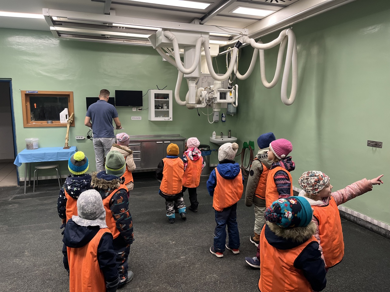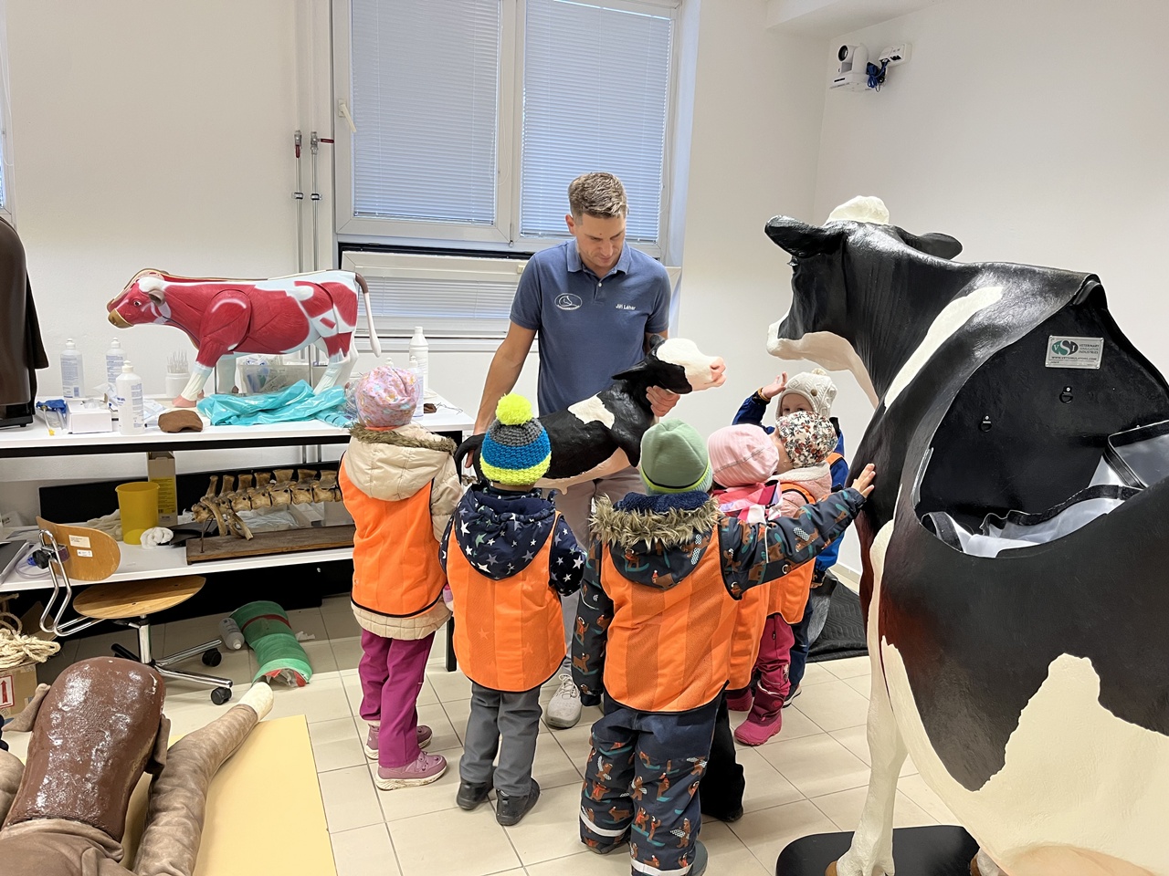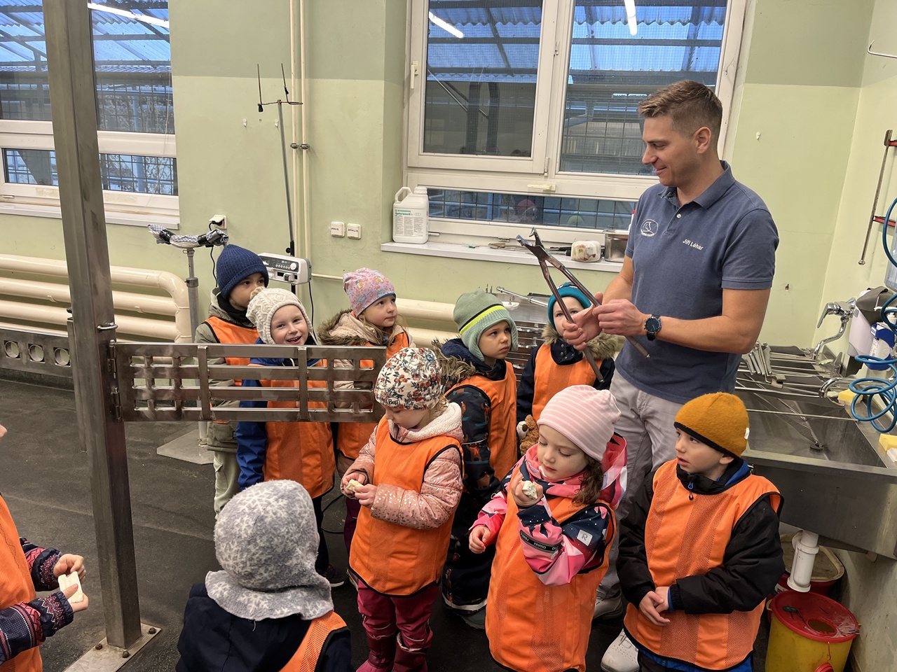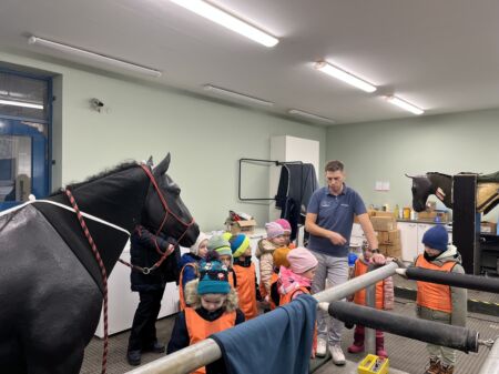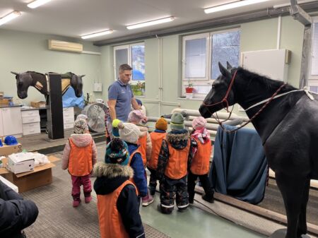 Pan doktor nás provedl po budově, kde se starají o koně a krávy. Děti měly možnost vidět operační sál, kde probíhají zákroky nemocných zvířat. Navštívili jsme také zubní ordinaci, ultrazvukové pracoviště a běžecký trenažér. Dětem bylo vysvětleno, k čemu se jednotlivá zařízení používají. Mohly si koně pomazlit a nakrmit, a na závěr jsme se společně zvážili na koňské váze – naše skupinka váží jako polovina jednoho koně. Věřím, že si děti návštěvu užily a odnesly si spoustu zajímavých zážitků.