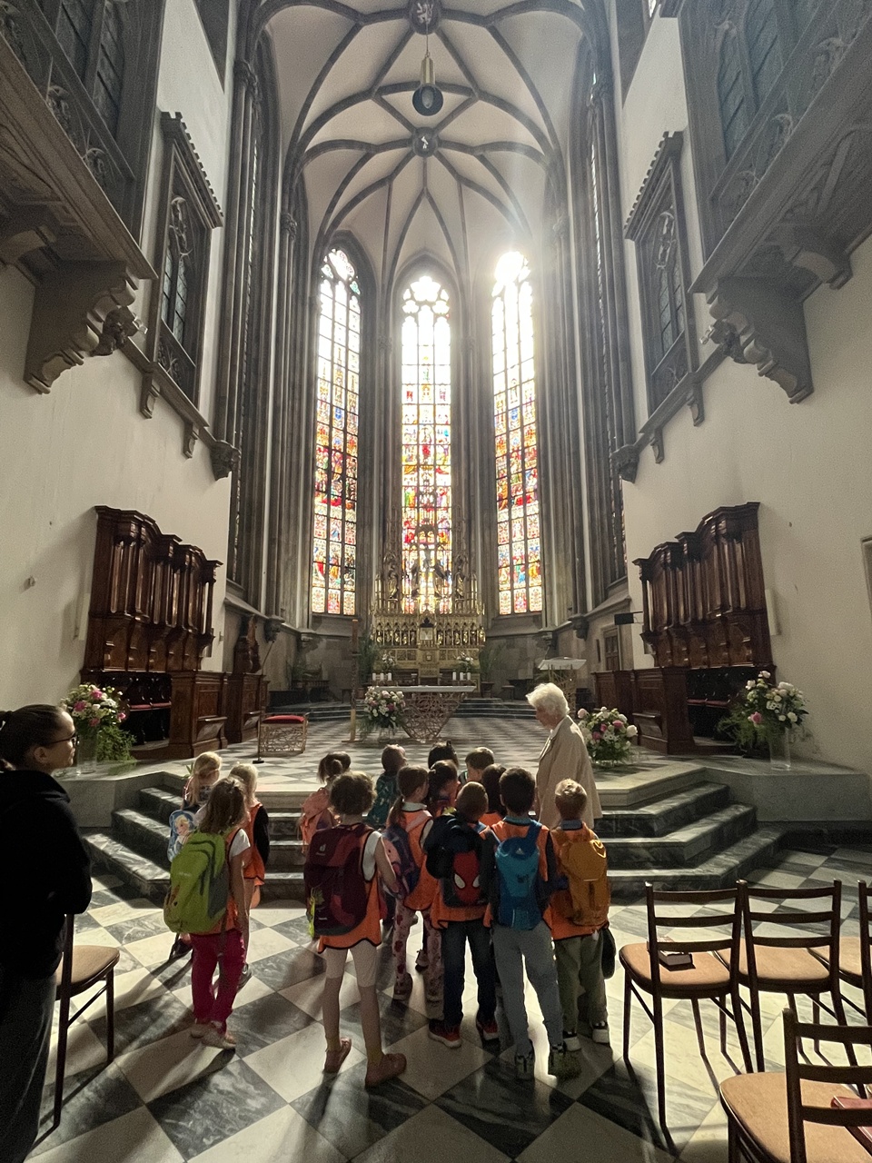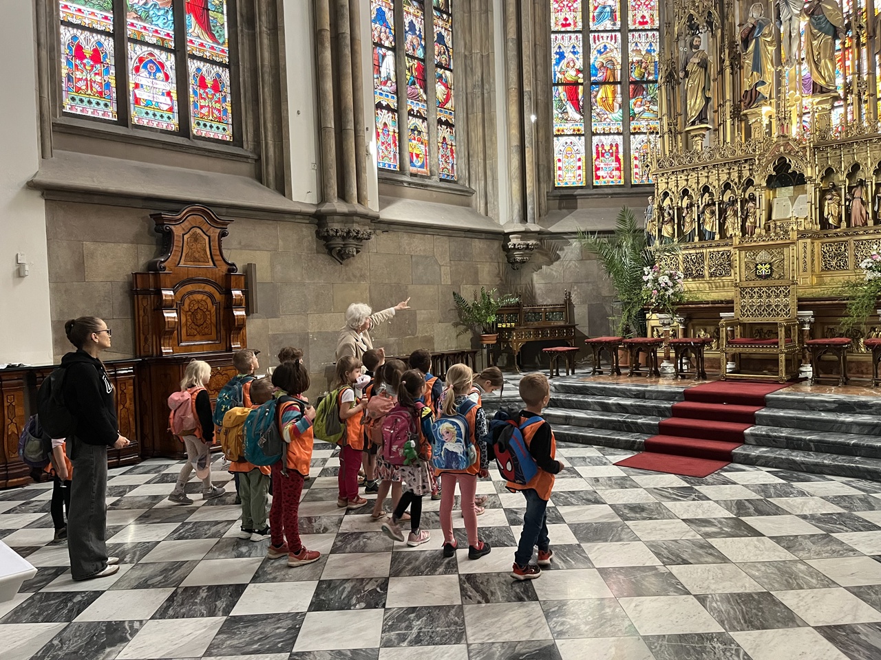 Celým areálem nás provedla milá paní průvodkyně, která dětem velmi poutavě a přiměřeně jejich věku vyprávěla o historii katedrály, o Bohu a o zajímavostech tohoto krásného místa. Děti byly z návštěvy nadšené – se zájmem naslouchaly, pozorovaly výzdobu i varhany a odnesly si spoustu nových zážitků.