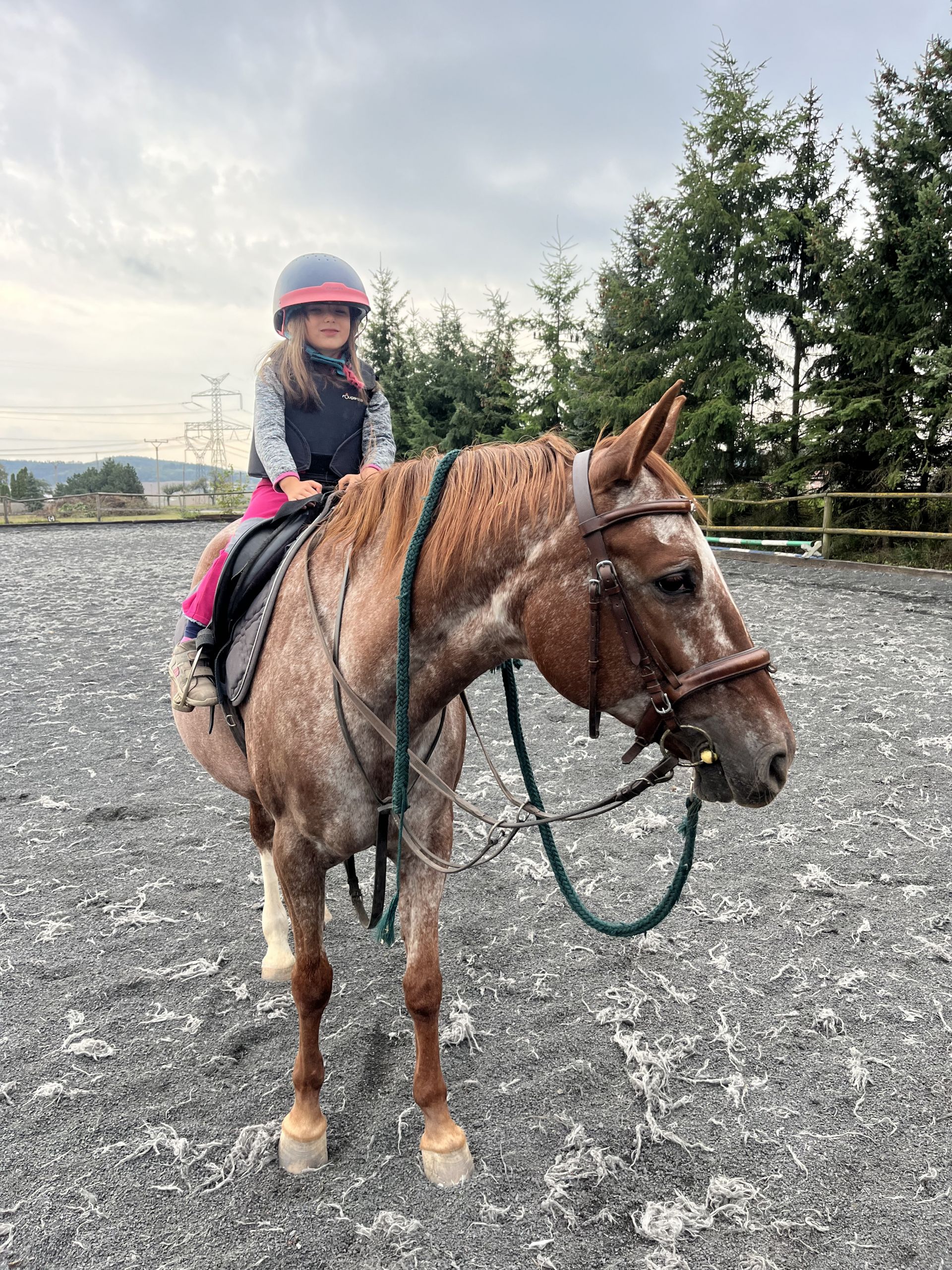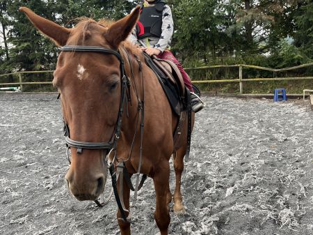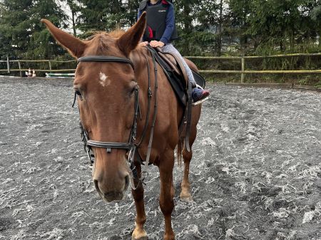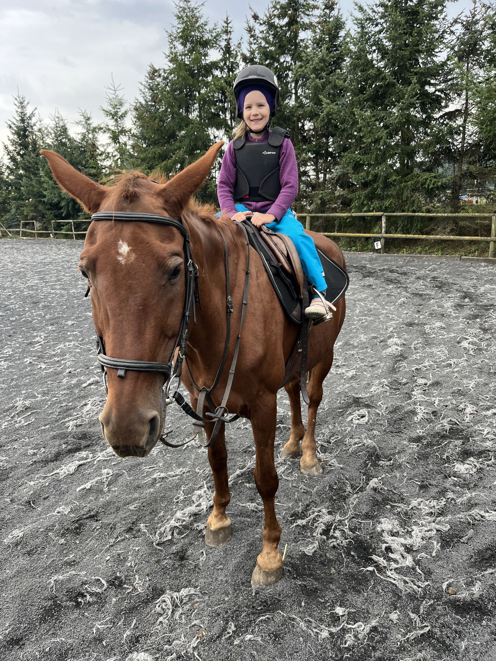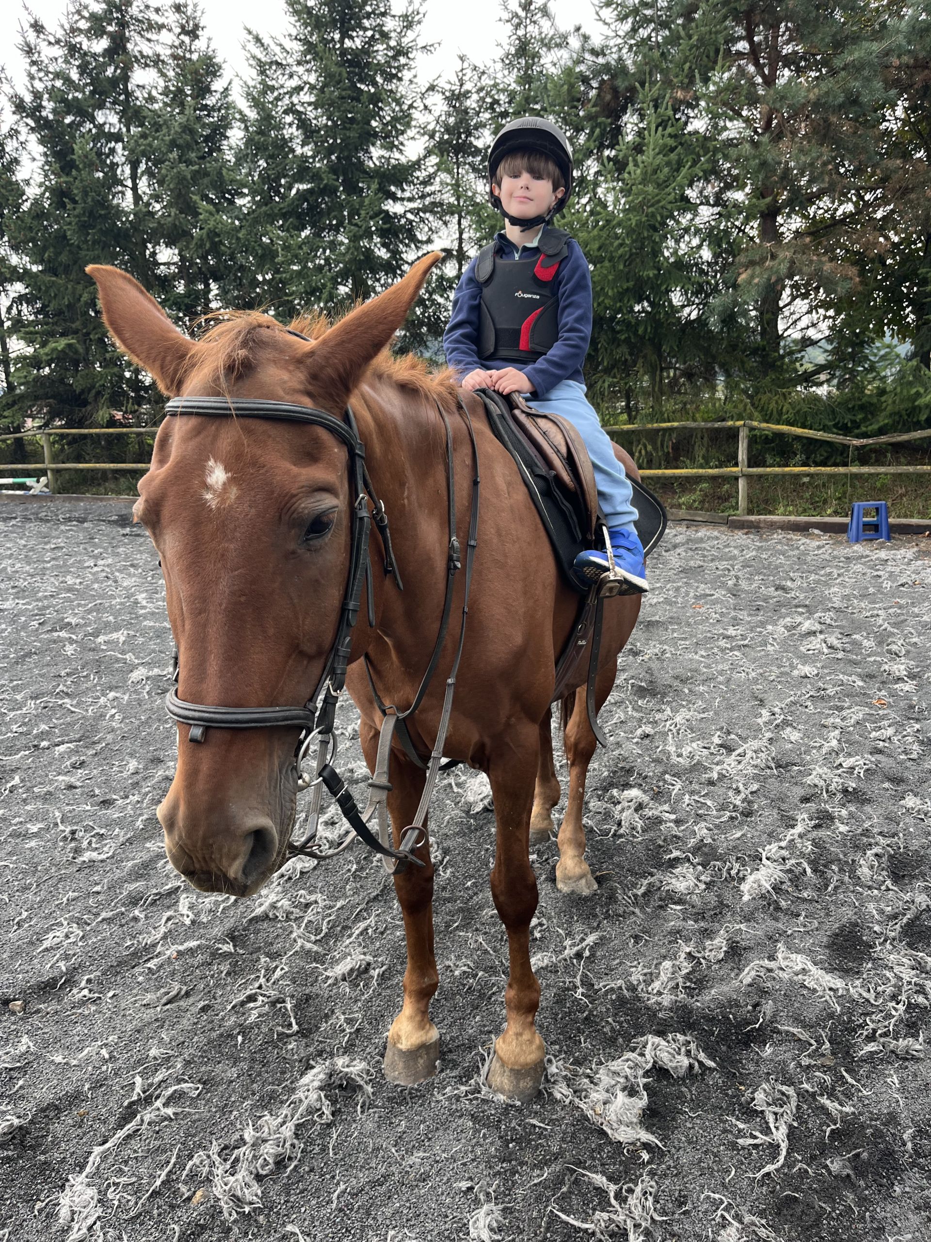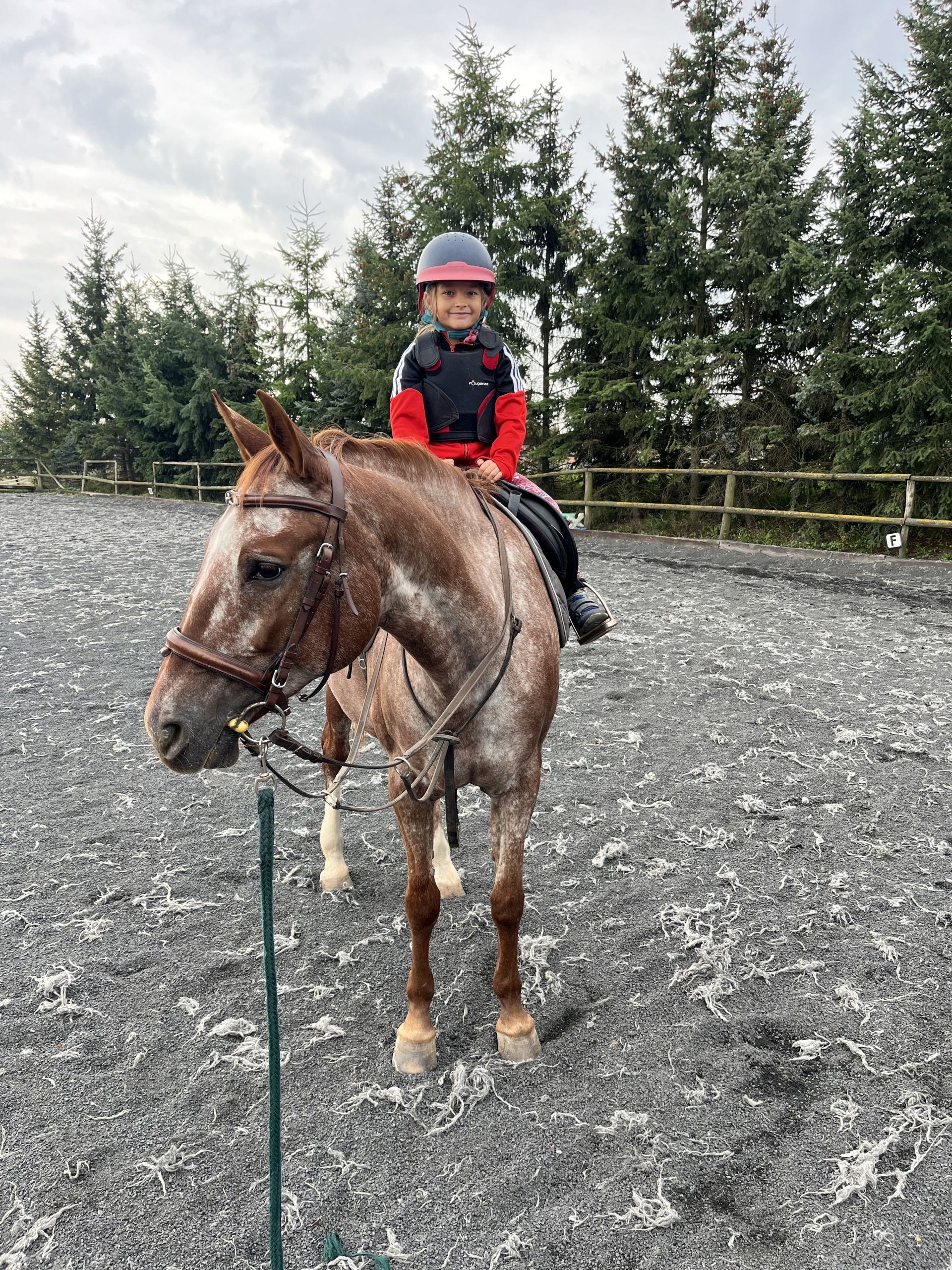 Vyzkoušeli jsme si jak se hřebelcují koně a také jsme se na nich povozili. Na závěr jsme koníky za odměnu nakrmili tvrdým pečivem, mrkvičkami a jablíčky.