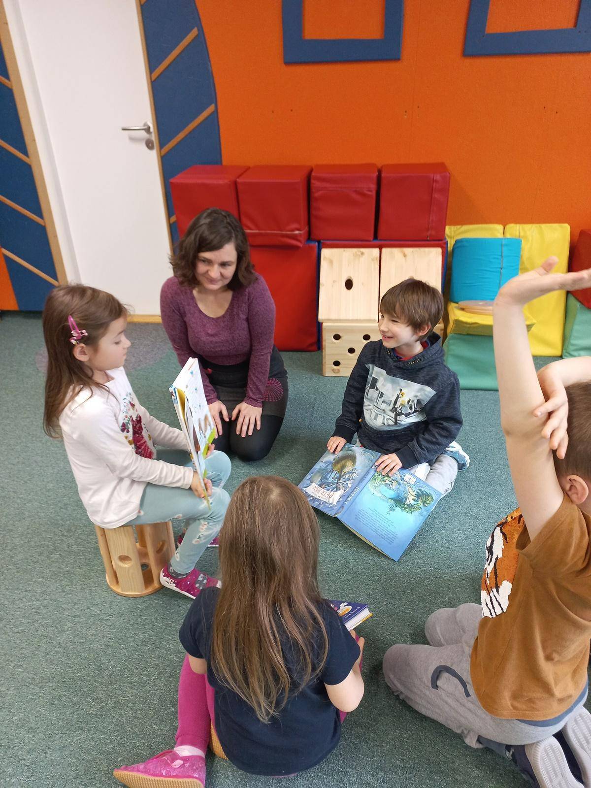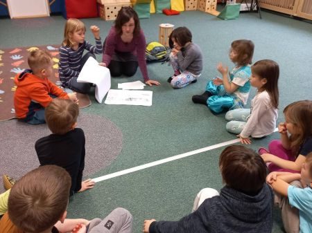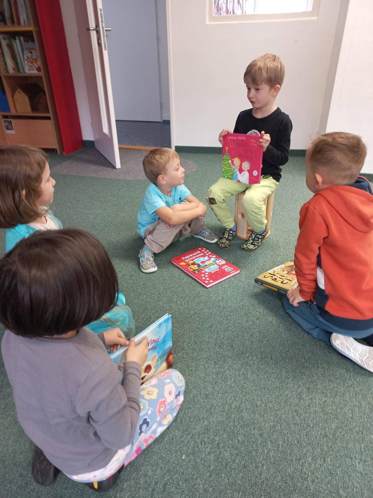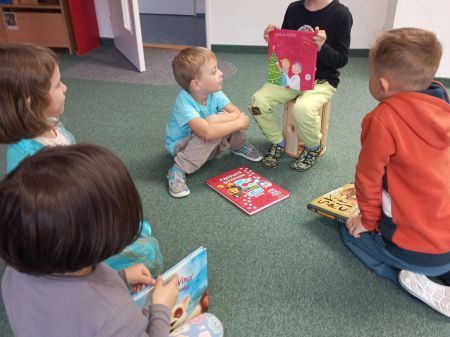 V pátek 31. 3. jsme se zapojili do celorepublikové akce “Noc s Andersenem”. Dopoledne jsme navštívili jundrovskou pobočku Knihovny Jiřího Mahena, kde nám paní knihovnice v obleku Ferdy mravence představila mnoho knih, které četli již naši rodiče i prarodiče. Poslechli jsme si ukázku z knihy Karla Čapka – Dášeňka. Odpoledne jsme ve školce uvítali dva hosty, kteří si s námi také přišli povídat o knihách. Mohli jsme blíže poznat práci překladatele a po napínavé ukázce ilustrací a krátkého čtení se již moc těšíme na vydání nově přeložené knihy. Po první návštěvě jsme si vzájemně představili naše oblíbené knihy a zkoušeli jsme hádat, z jakého důvodu ji má náš kamarád rád. Další host nám přečetl celou knihu Obejmi mě, prosím, což bylo krásné zakončení našeho čtenářského dne.