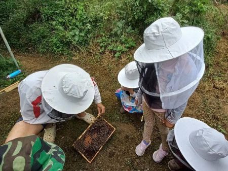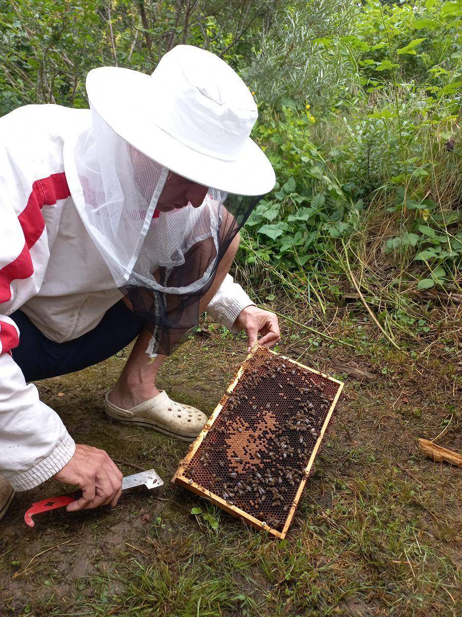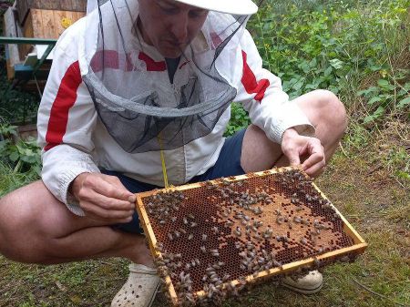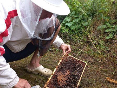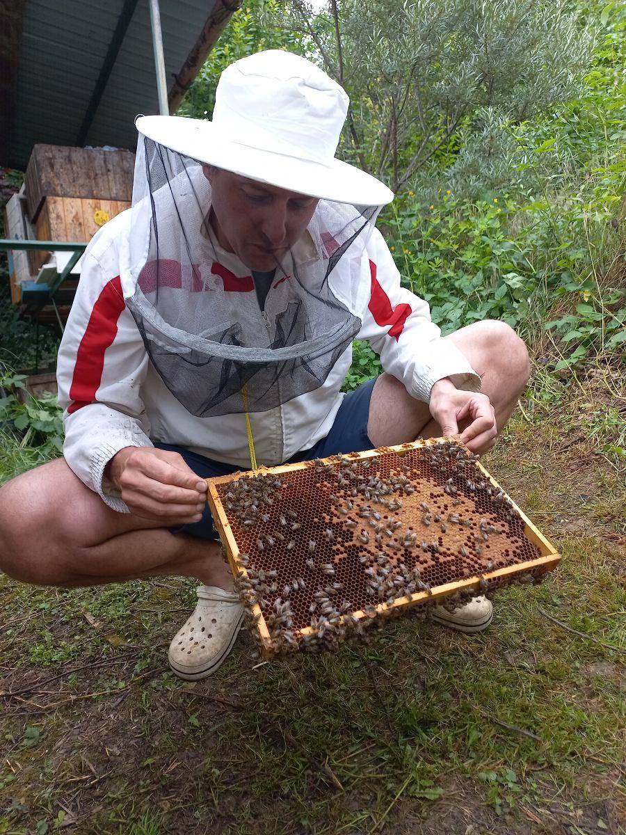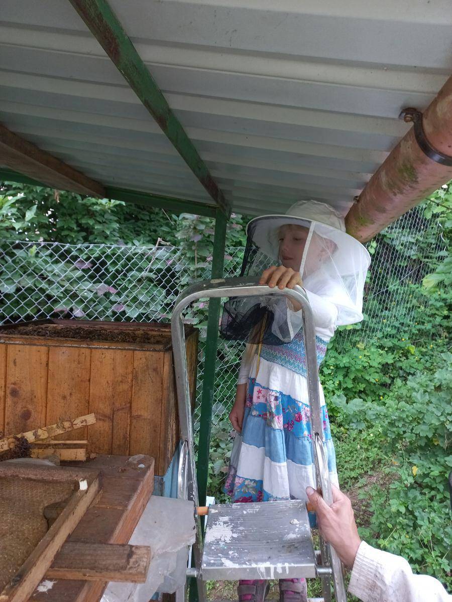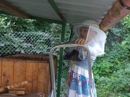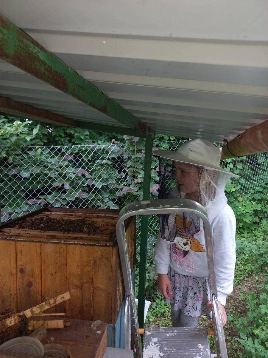 Na návštěvu nás tentokrát k sobě pozval včelař přímo z Jundrova. Na jeho zahradě jsme si nejdříve povídali o bezpečném chování v blízkosti úlů, oblékli jsme si ochranné včelařské klobouky a poté jsme úly s velkou opatrností i prozkoumali.