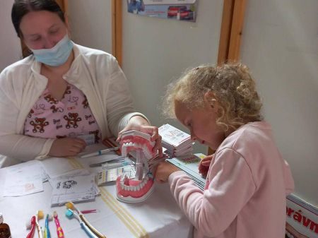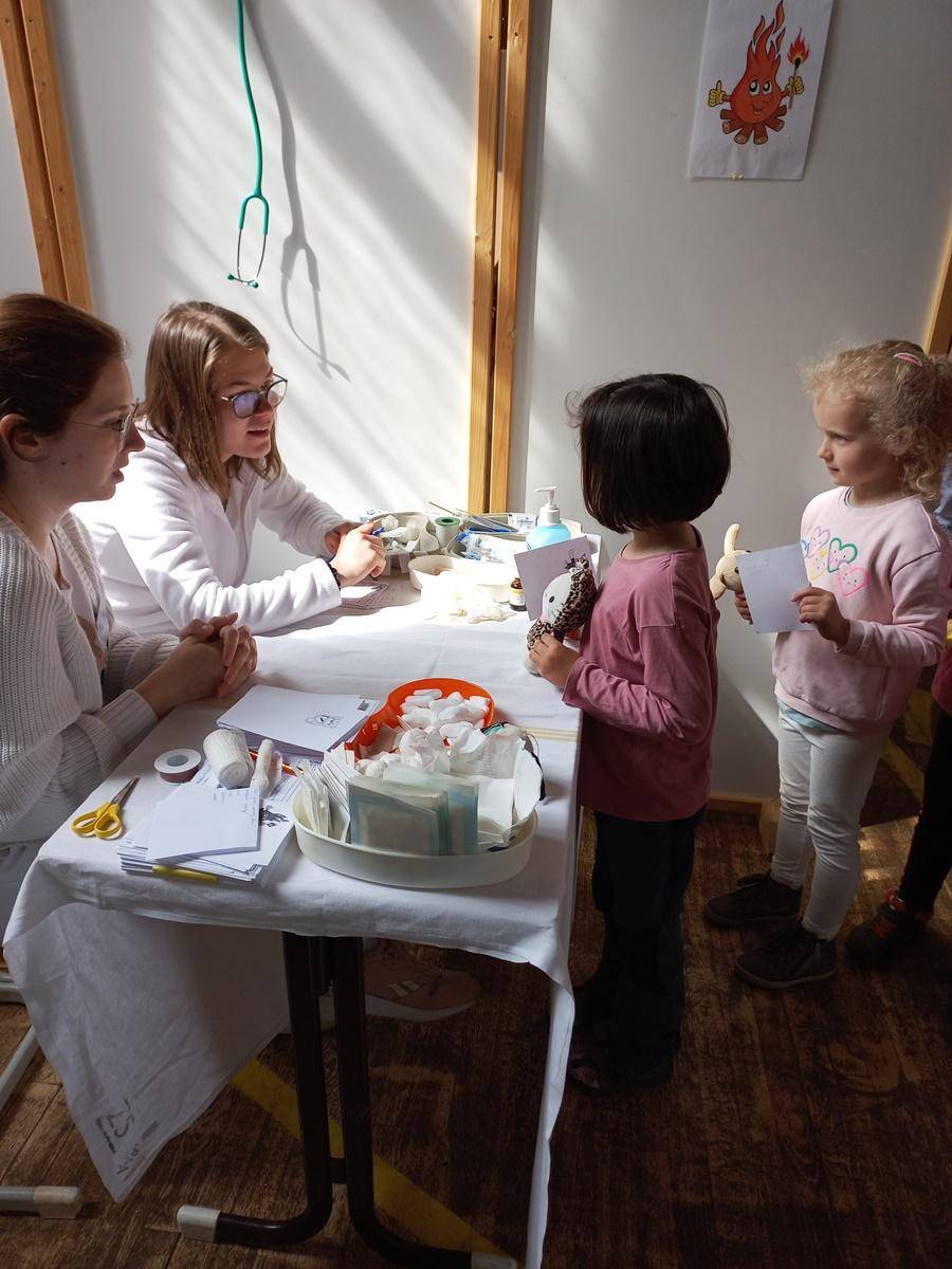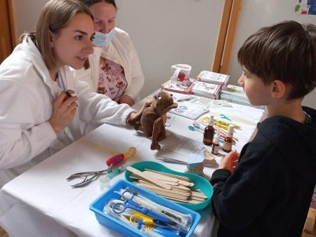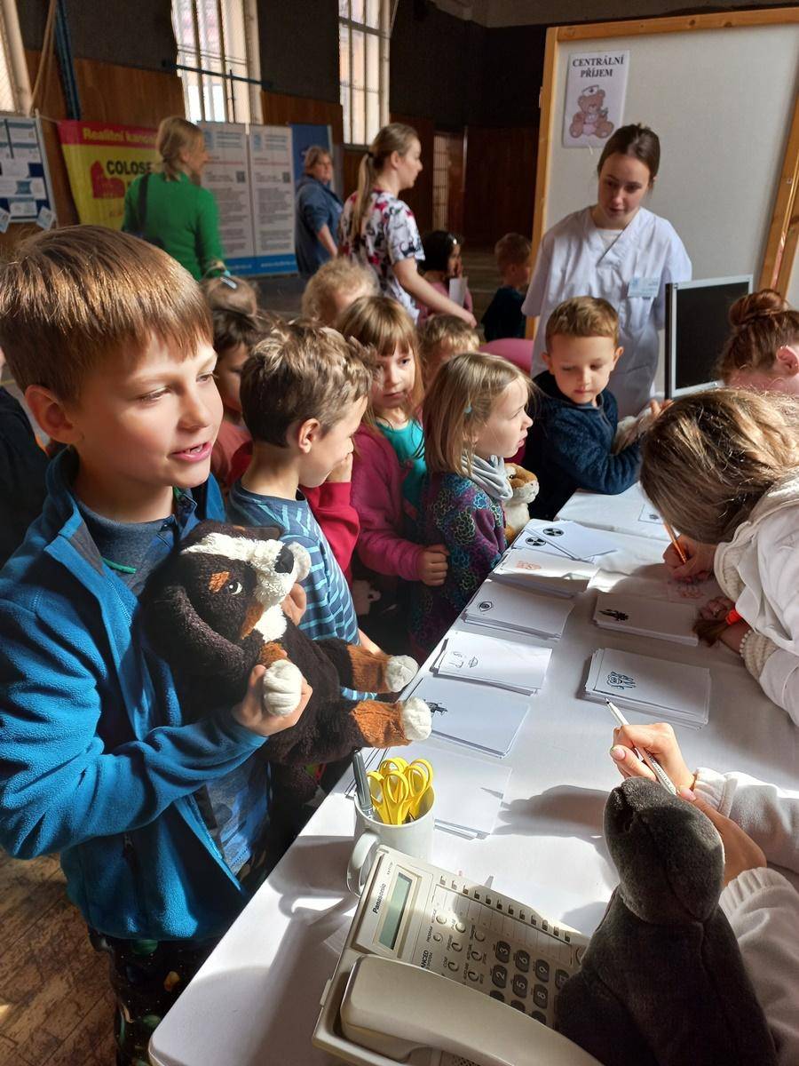 Děti byly svým plyšovým kamarádům velkou oporou, vysvětlovaly ošetřovatelskému personálu jakými potížemi zvířátko trpí, podávaly léky. Věříme, že po pečlivém ošetření se podařilo všechna zvířátka uzdravit. Další kroky vedly k policii a dobrovolným hasičům, děti si mohly prohlédnout sanitku a nakonec i povodit pejska v rámci canisterapie.