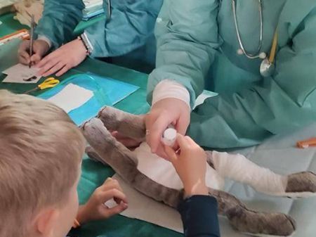 Tentokrát jsme na výlet nejeli daleko, zůstali jsme v Brně a navštívili Nemocnici zvířátek na Vyšší odborné zdravotnické škole. Každý z nás si přivezl nemocné či poraněné plyšové zvířátko a prošel s ním veškerá vyšetření, některá zvířátka potřebovala dokonce i operaci.