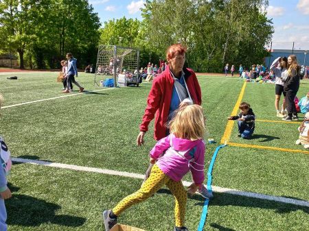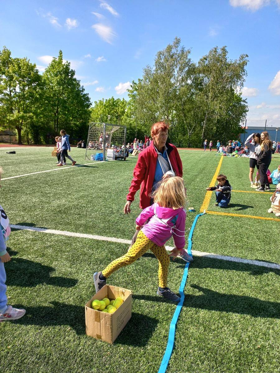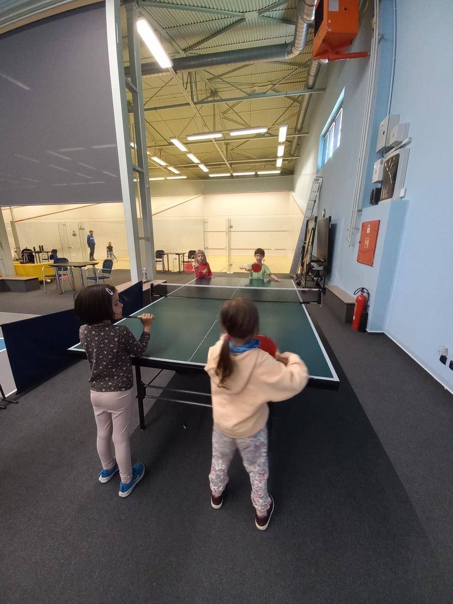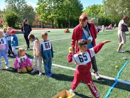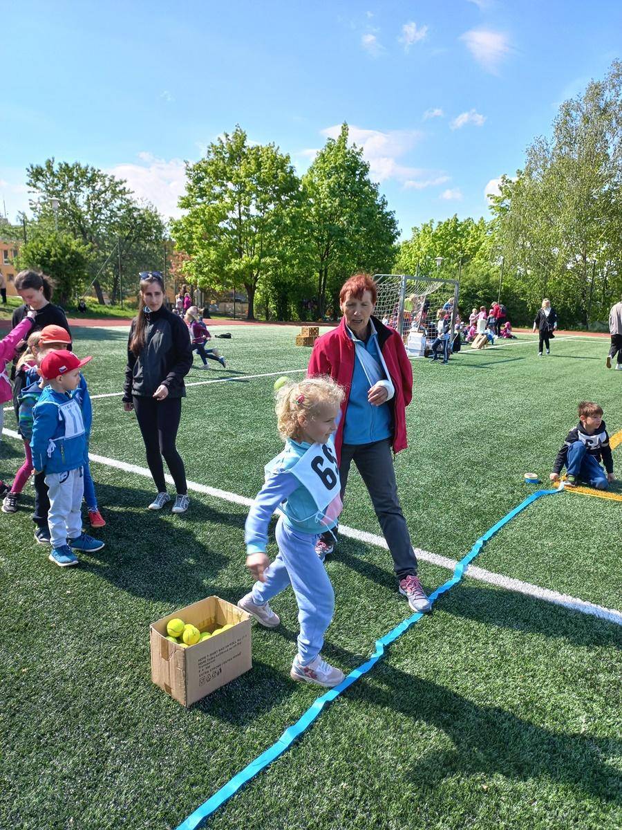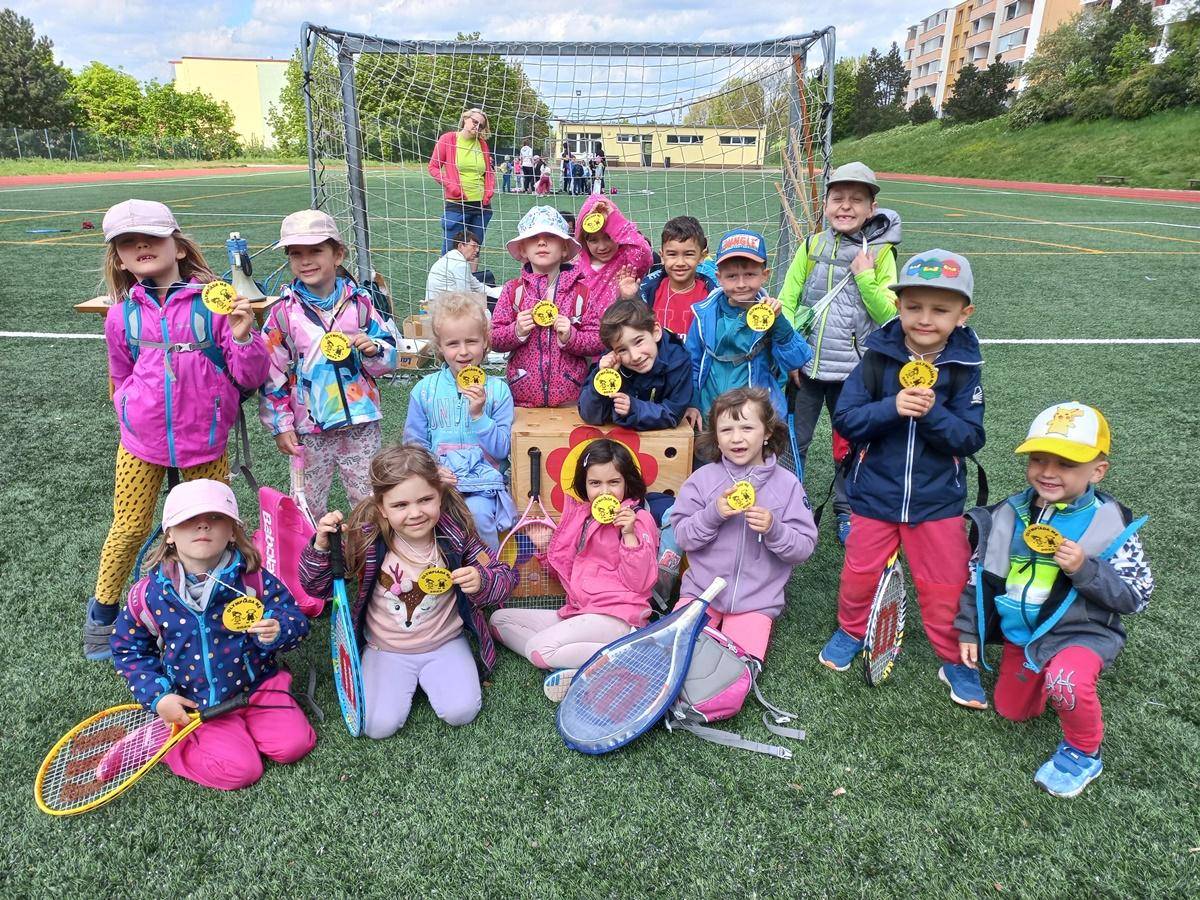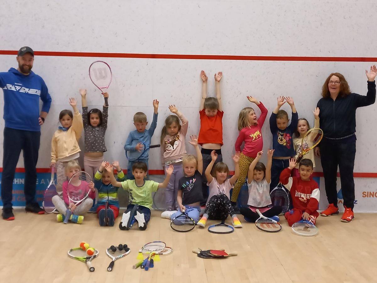 Sportovní den jsme zahájili účastí na olympiádě mateřských škol ve Slatině, kde jsme mohli změřit síly ve třech disciplínách. Děti naši školku reprezentovaly v hodu míčkem do dálky, skoku do dálky z místa a běhu na 20m z vysokého startu. Z olympiády jsme přejeli do squashového centra v Ivanovicích, kde nás již očekávali tři trenéři. Díky nim jsme si mohli vyzkoušet různé raketové sporty. Ve skupinkách jsme postupně trénovali ping pong, badminton, squash a tenis.