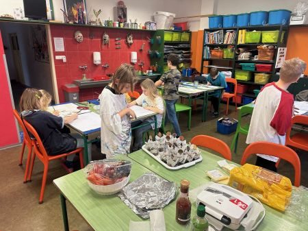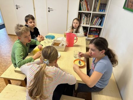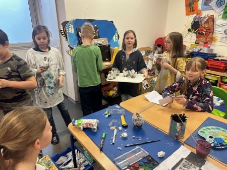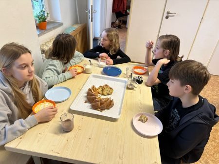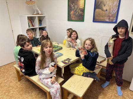 Program jsme měli opravdu velmi nabitý. Po třídním kole recitační soutěže jsme se přesunuli do bazénu na plavčo, kde jsme si to náramně užili. K večeři jsme si objednali skvělou pizzu, po které následoval filmový večer. Zachumlaní ve svých pyžamech a spacácích jsme zhlédli film Fantastická zvířata a kde je najít. Další den po snídani jsme dopoledne strávili malbou a kresbou ilustrací k našim básničkám. Následoval super oběd na Piavě, po kterém jsme autobusem přejeli do divadla Barka. Zde následoval “zlatý hřeb” naší přespávací akce. Skvěle jsme se bavili u představení divadel Brněnského loutkotoče. Už se těšíme na další přespávačku.