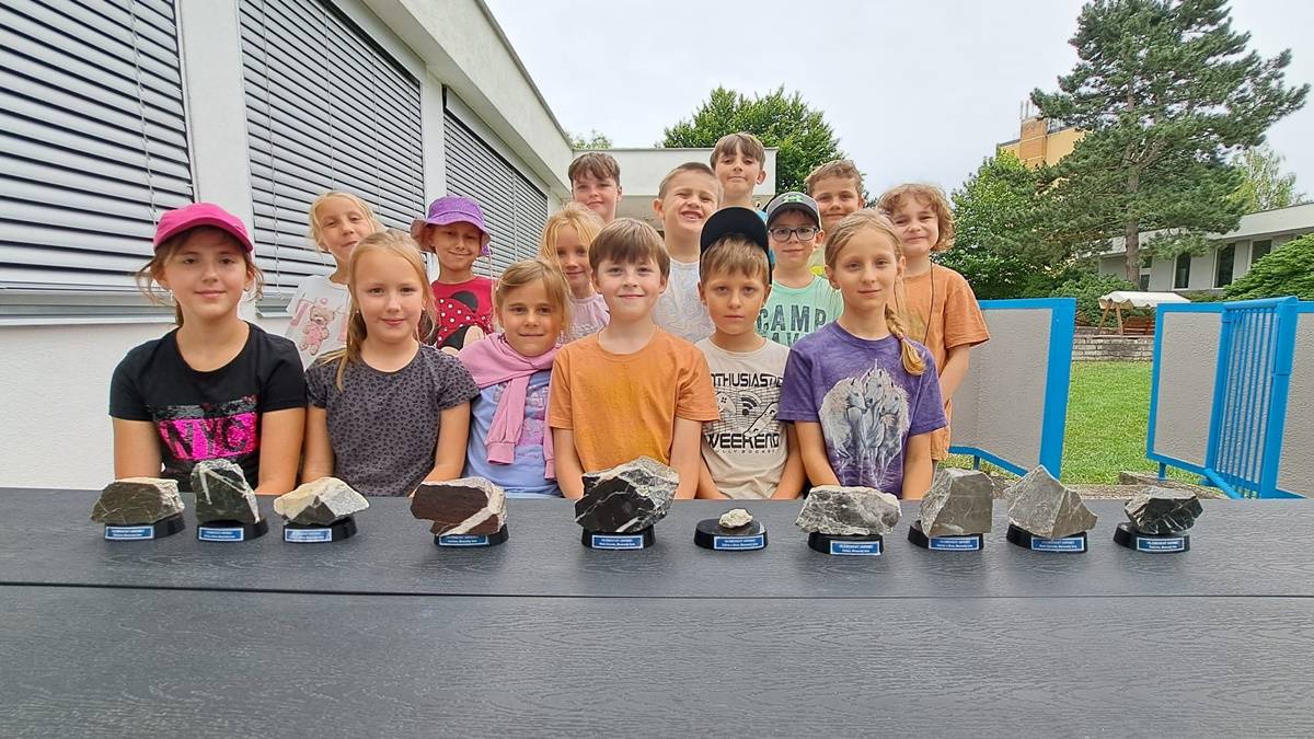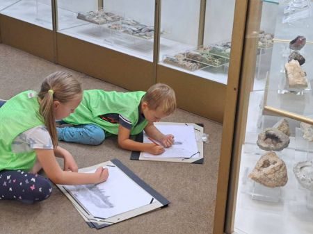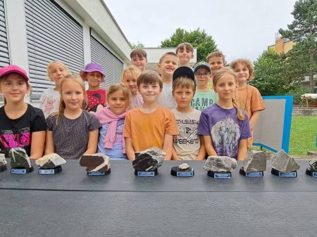 Na konci dne si každý malý geolog po zásluze odnesl jeden vybroušený vápenec, základ budoucí sbírky. Další zkoumání nás zavedlo do Moravského zemského muzea na výstavu Země plná kamínků. Po zajímavém povídání se šlo do expozice, která obsahuje několik tisíc vzorků minerálů a hornin. Nakonec si každé z dětí vybralo kámen, který je nejvíc zaujal, a na řadu přišla kresba.