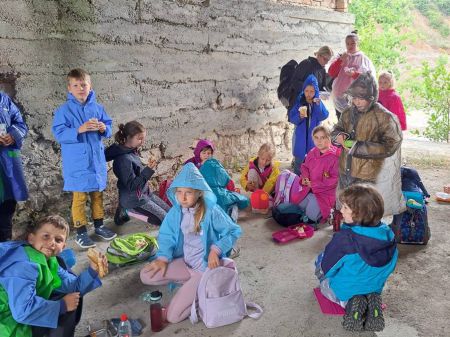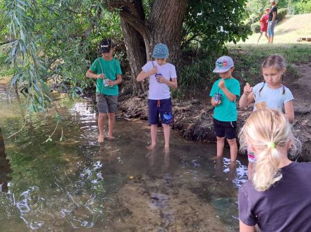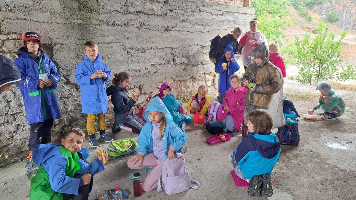 Nejdeštivější den z celého týdne připadl na celodenní výlet do Moravského krasu, kde děti čekal program Skrytá krása kamenů. Nejdřív jsme v dešti trávili čas v lomu, kde jsme vybírali kameny – vápence vhodné k řezání, broušení a leštění. Následující program ale naštěstí probíhal již vevnitř.