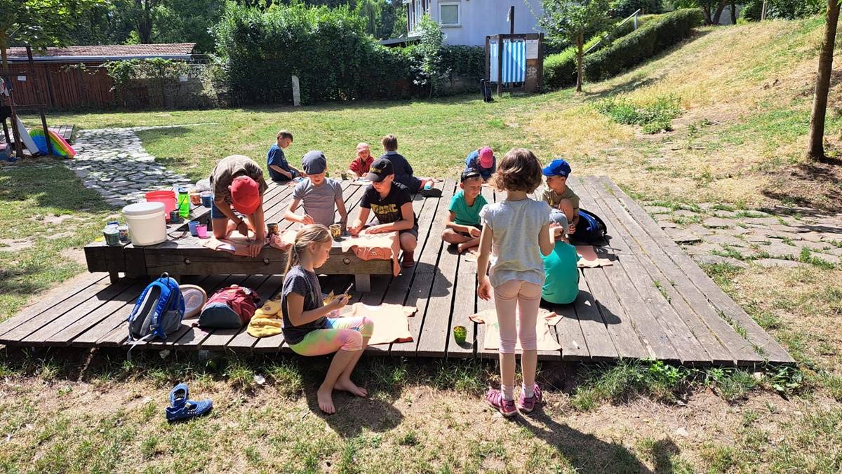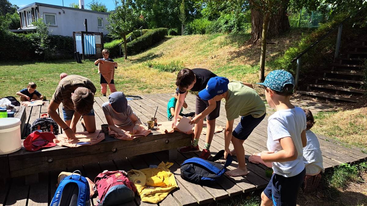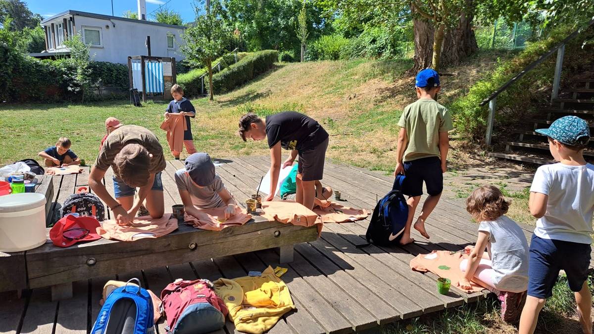 První srpnový týden přivítala škola skupinu malých badatelů – geologů. Přihlásili se na příměstský tábor Kamínky, který byl zaměřený na zkoumání minerálů a hornin, tedy kamenů. Program byl velmi pestrý. Jako první si děti vyzkoušely “africkou batiku”, barvení triček a látkových tašek blátem smíchaným s barvou.
