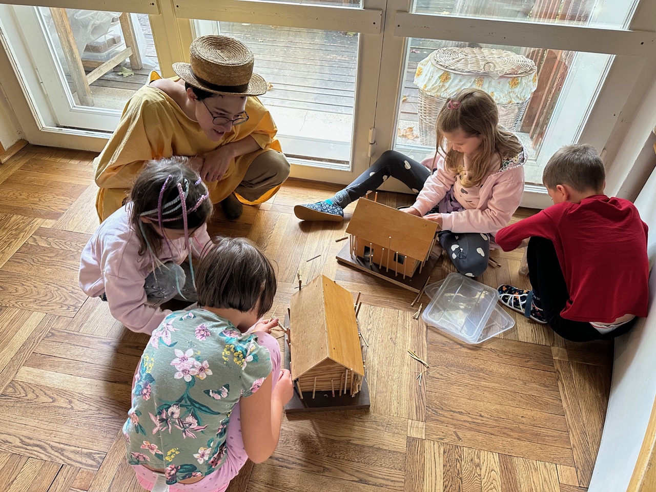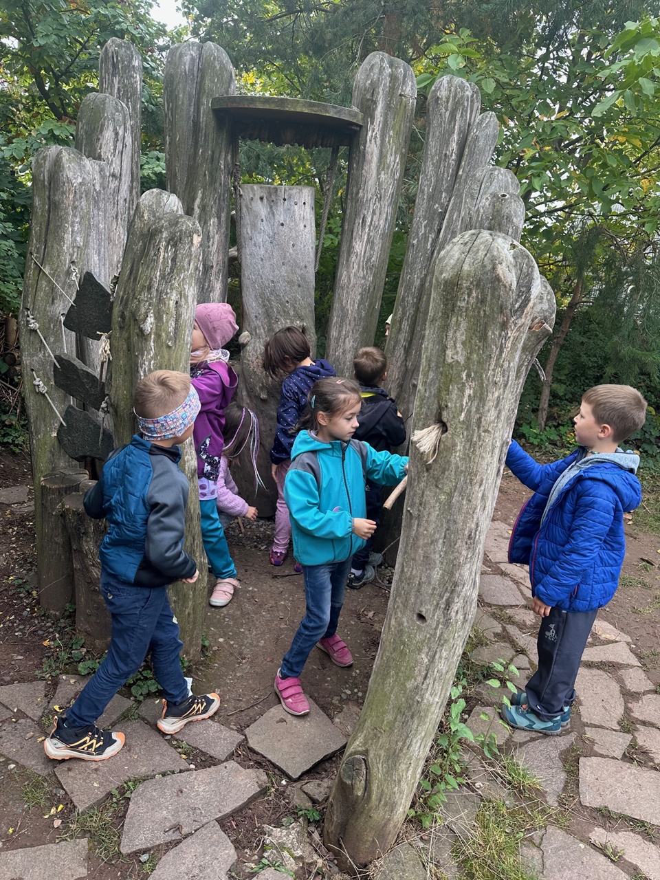 Děti se formou pohádky seznámily se Skřítkem Hračičkou a měly za úkol získat klíče království kamene, slámy, hlíny a dřeva zaklejí. Vyzkoušely si s těmito materiály pracovat a dozvěděly se, proč jsou důležité. Vyzkoušely si zateplit dřevěný domek pomocí slaměných snopečků, malovat barevnými hlínami, zahrály si na dřevěné zvukové prvky. Program děti velmi bavil a skvěle si jej užily.