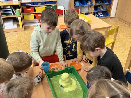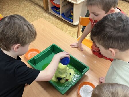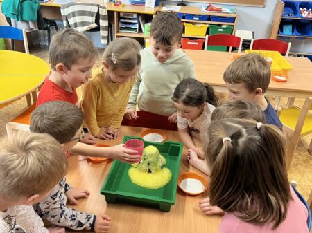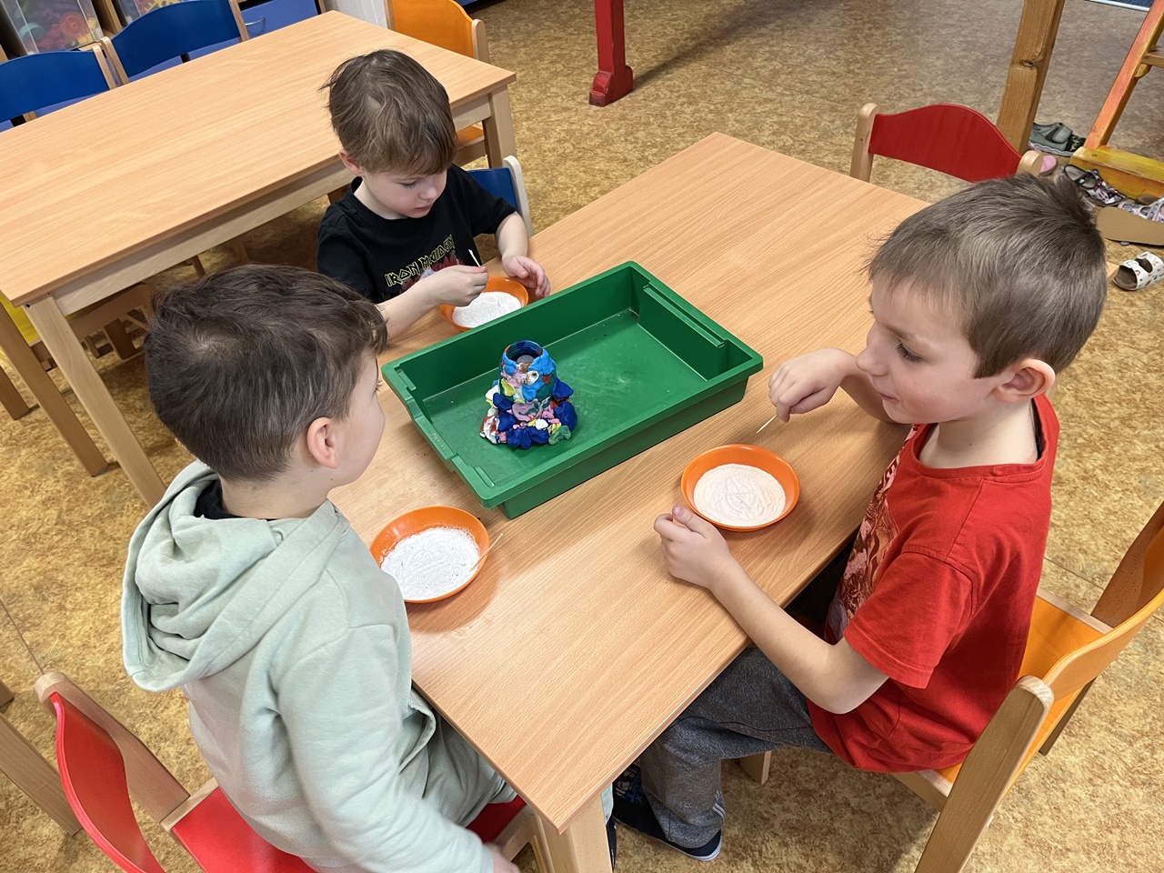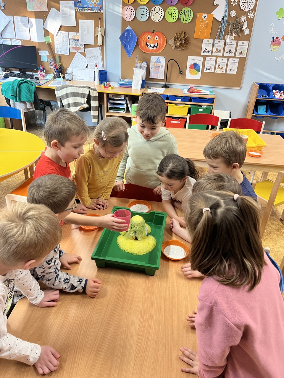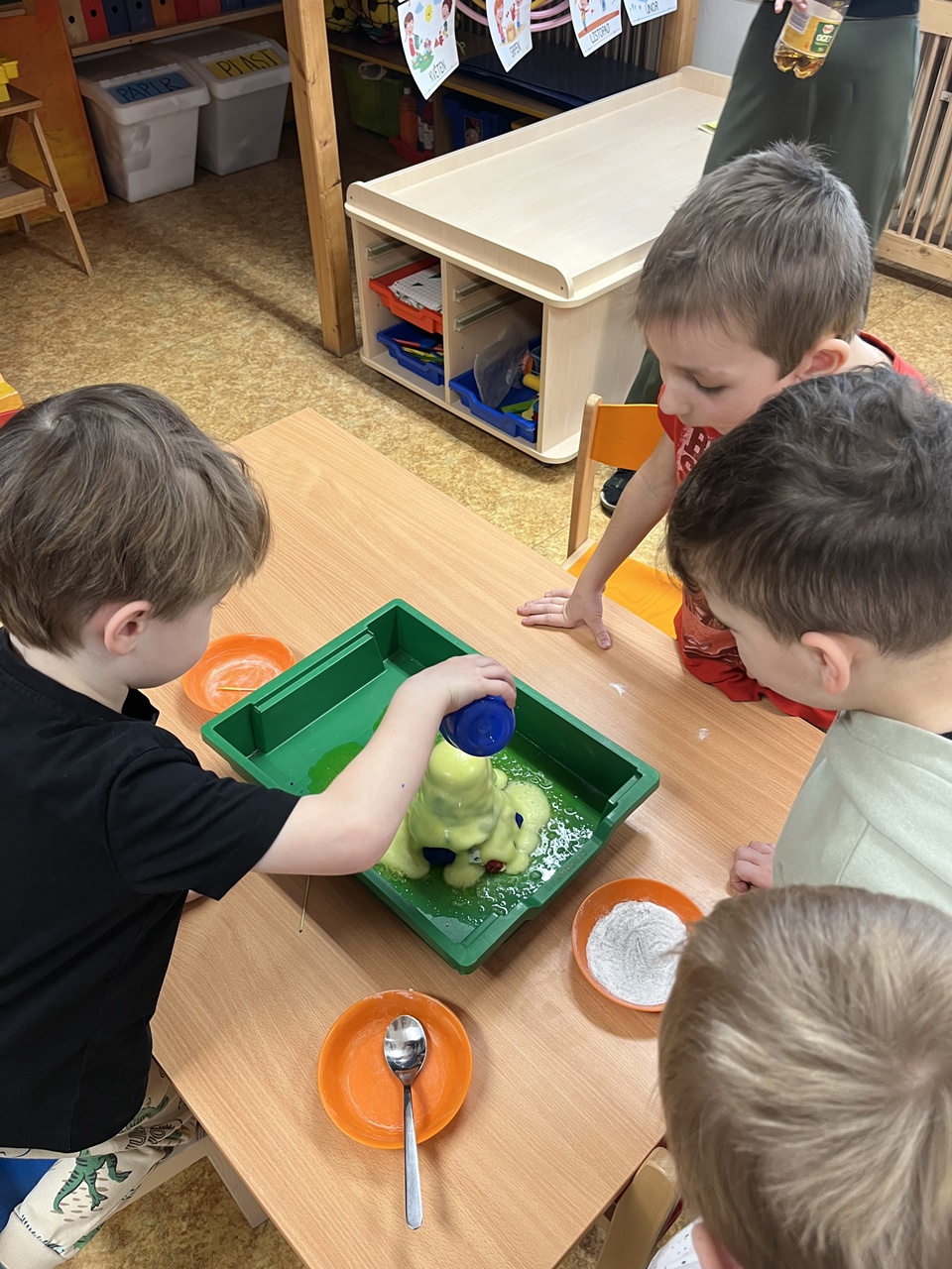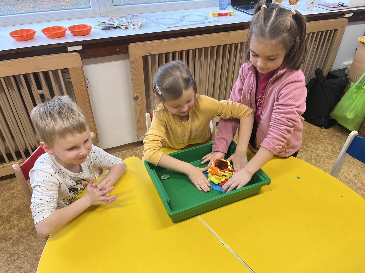 Poté si děti samy smíchaly potřebné ingredience a s nadšením sledovaly, jak sopka „vybuchuje“. Během pokusu děti spolupracovaly, vzájemně si pomáhaly a užily si spoustu zábavy.