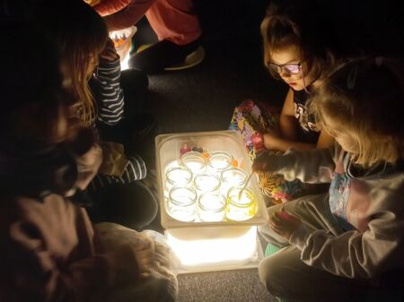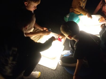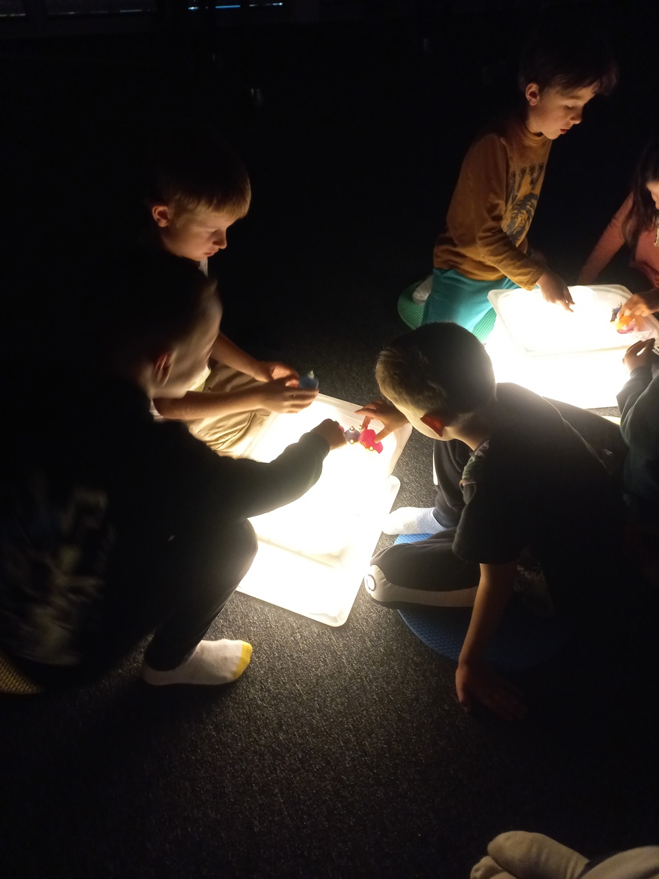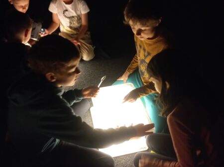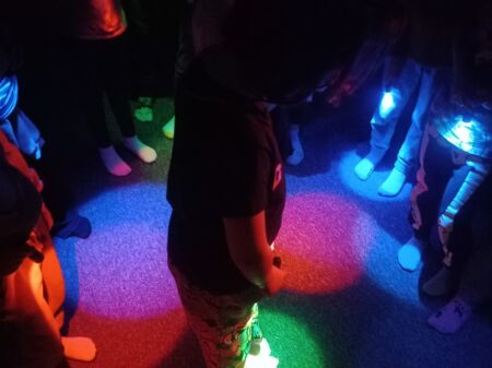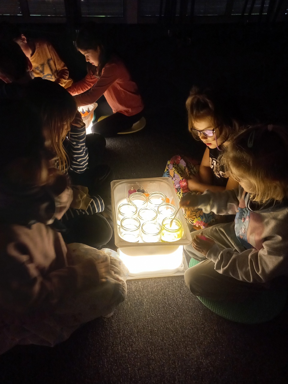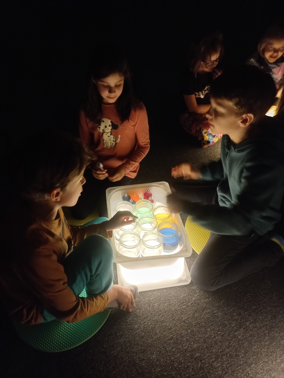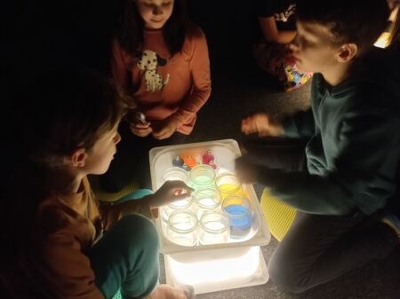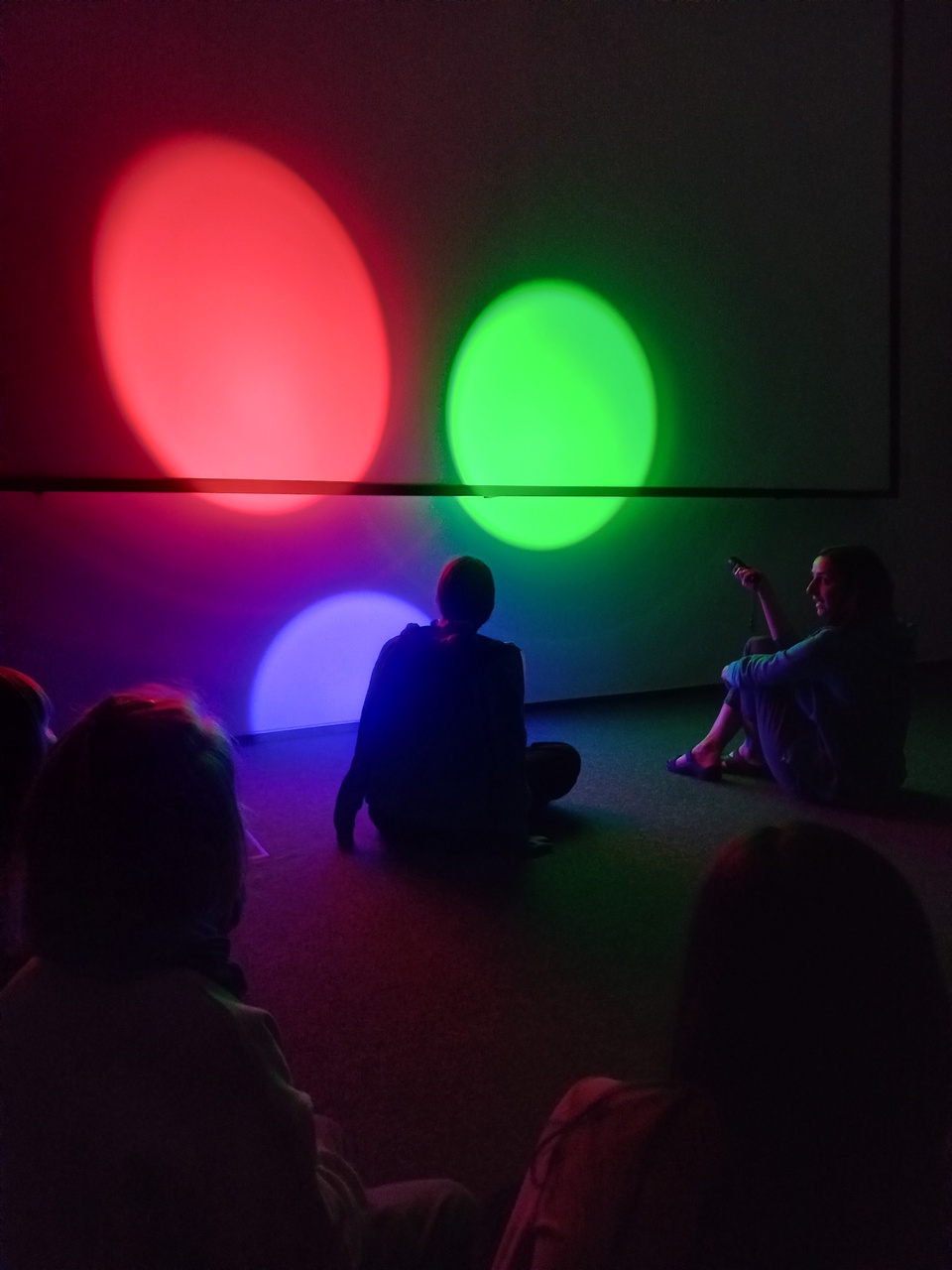 Ve Vidě jsme společně celou hodinu experimentovali a míchali základní barvy. Pozorovali jsme rozdíly mezi světelným a klasickým mícháním barev a na závěr jsme spatřili “kouzlo” rozložení bílého světla ve spojitosti se světelným spektrem.