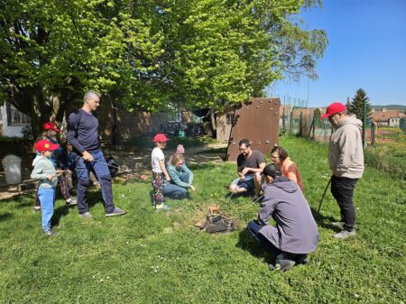 A věřte nevěřte, na rozdíl od minulých let, byl letos náš “úlovek” odpadků nevalný. Asi jsme v minulých letech okolní les tak dobře vysmýčili, že žádné pneumatiky, části sanitárních zařízení či trubek a plechů už tam zkrátka nebyly. Že by šel lid jundrovský do sebe a začal se chovat ekologicky? Kéž by tomu tak bylo. Krásně jsme se prošli, posbírali do pytle pár petek, papírů a igeliťáků a s dobrou náladou zakončili procházku na školní zahradě opékáním buřtů, příjemnou konverzací, jízdou na koloběžkách a hrou s míčem.