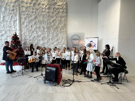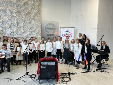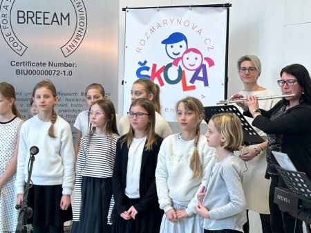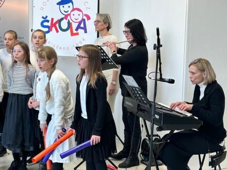 Publiku z řad veřejnosti i našich rodičů zazpívali s dospěláckým doprovodem autorské písně z našeho školního zpěvníku. Za vystoupení byli po zásluze odměněni velkým potleskem.