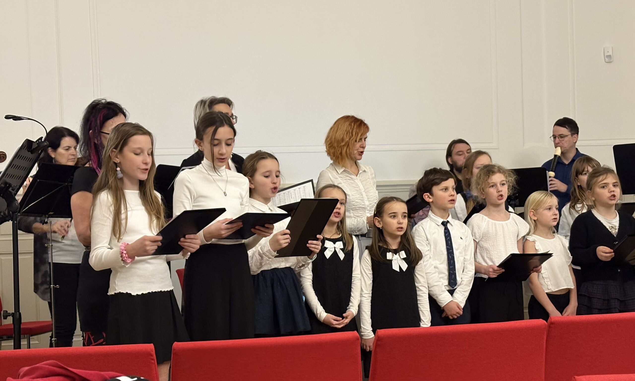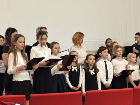 Malí zpěváci ze školního pěveckého sdružení VRZ vystoupili 17. 12. v programu předvánočního koncertu Brněnské cameraty ve Štukovém sále na Rektorátě VUT.